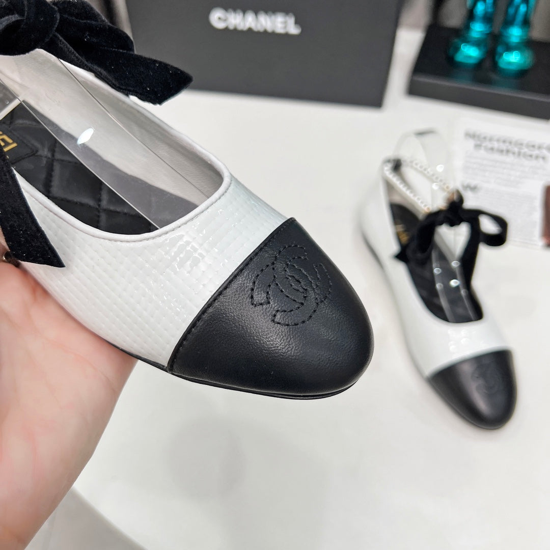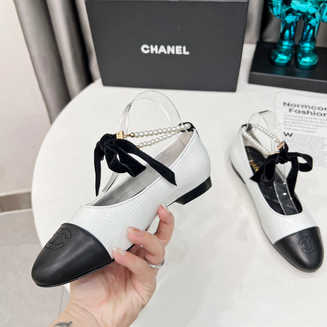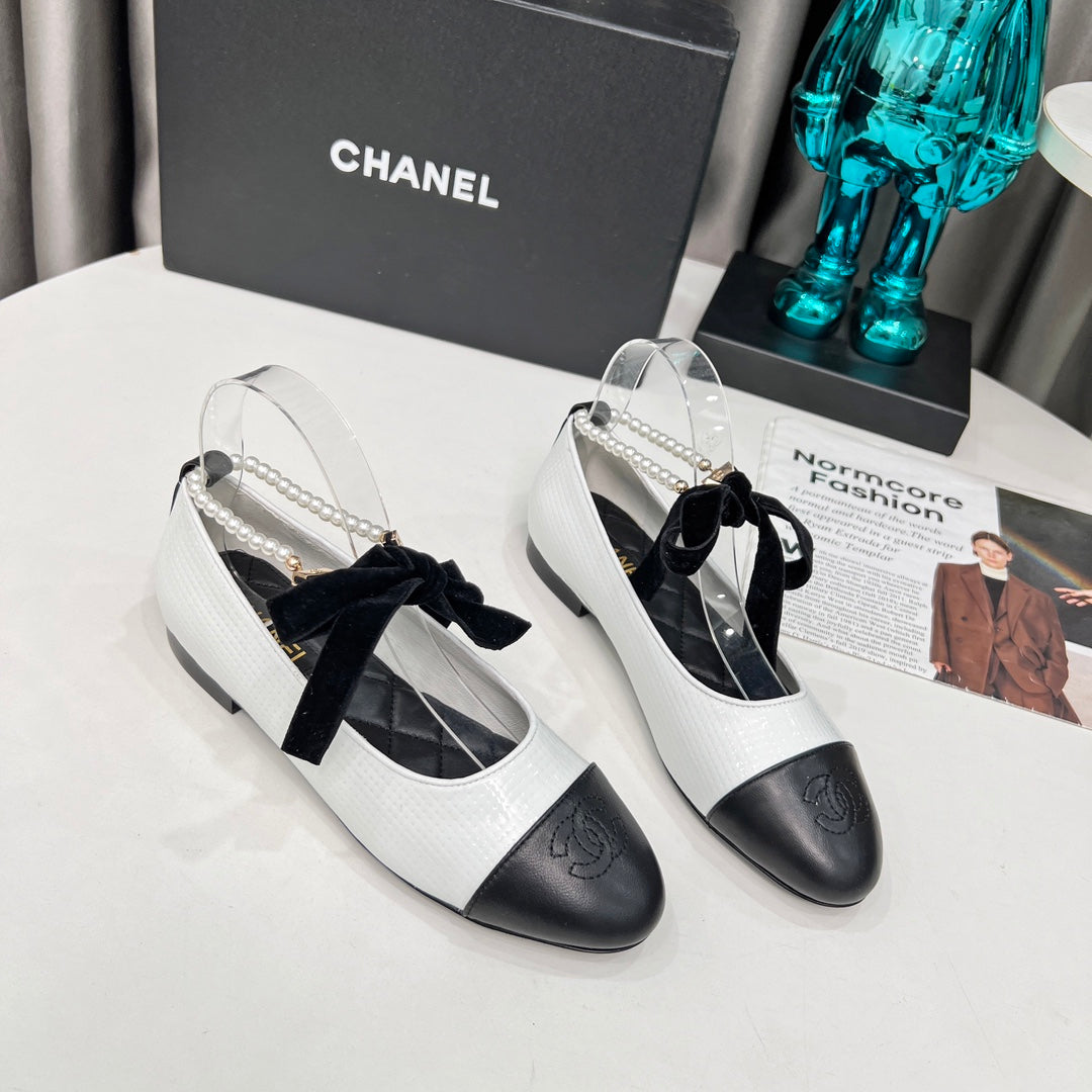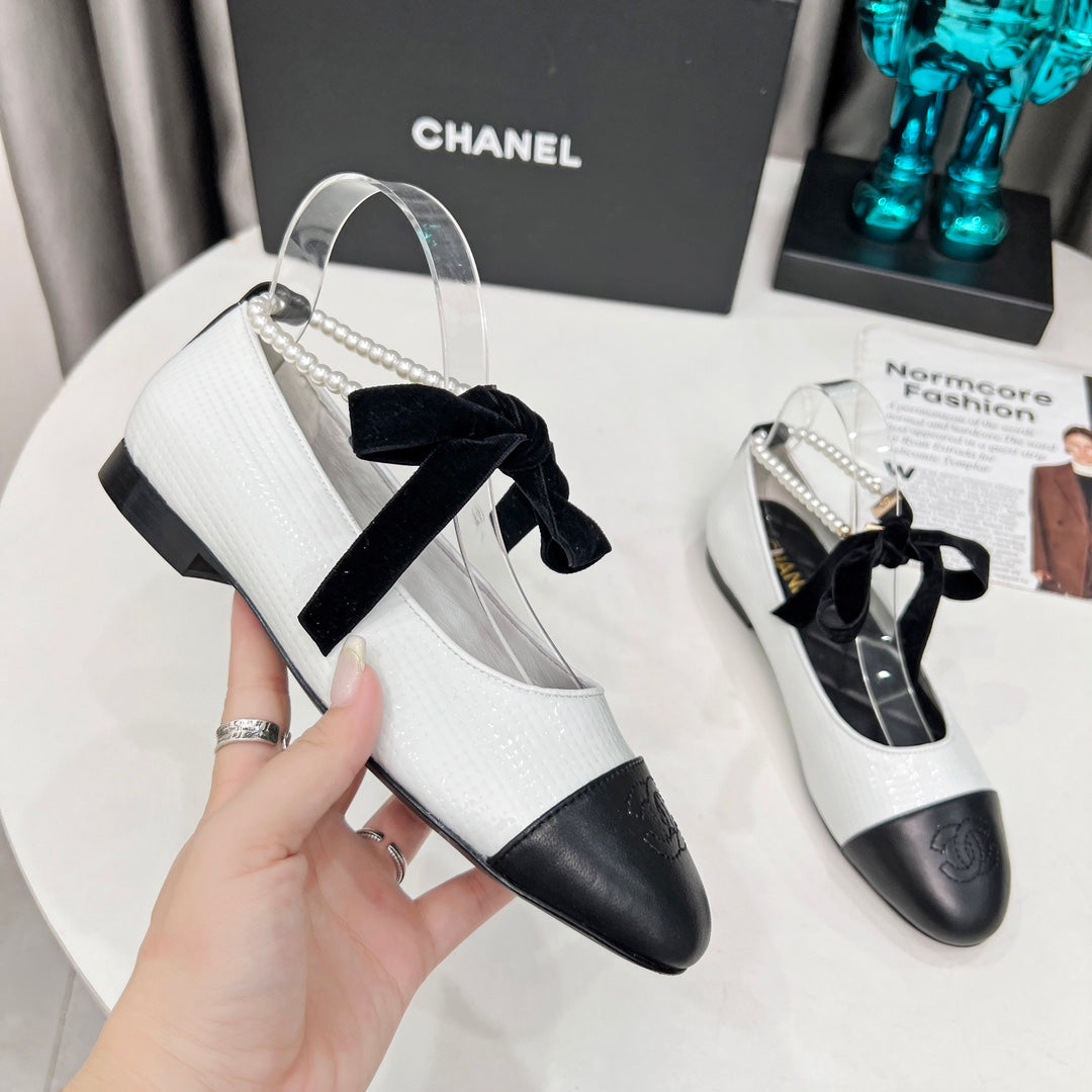 CC Mary Jane White Black Studded With Pearls Lambskin