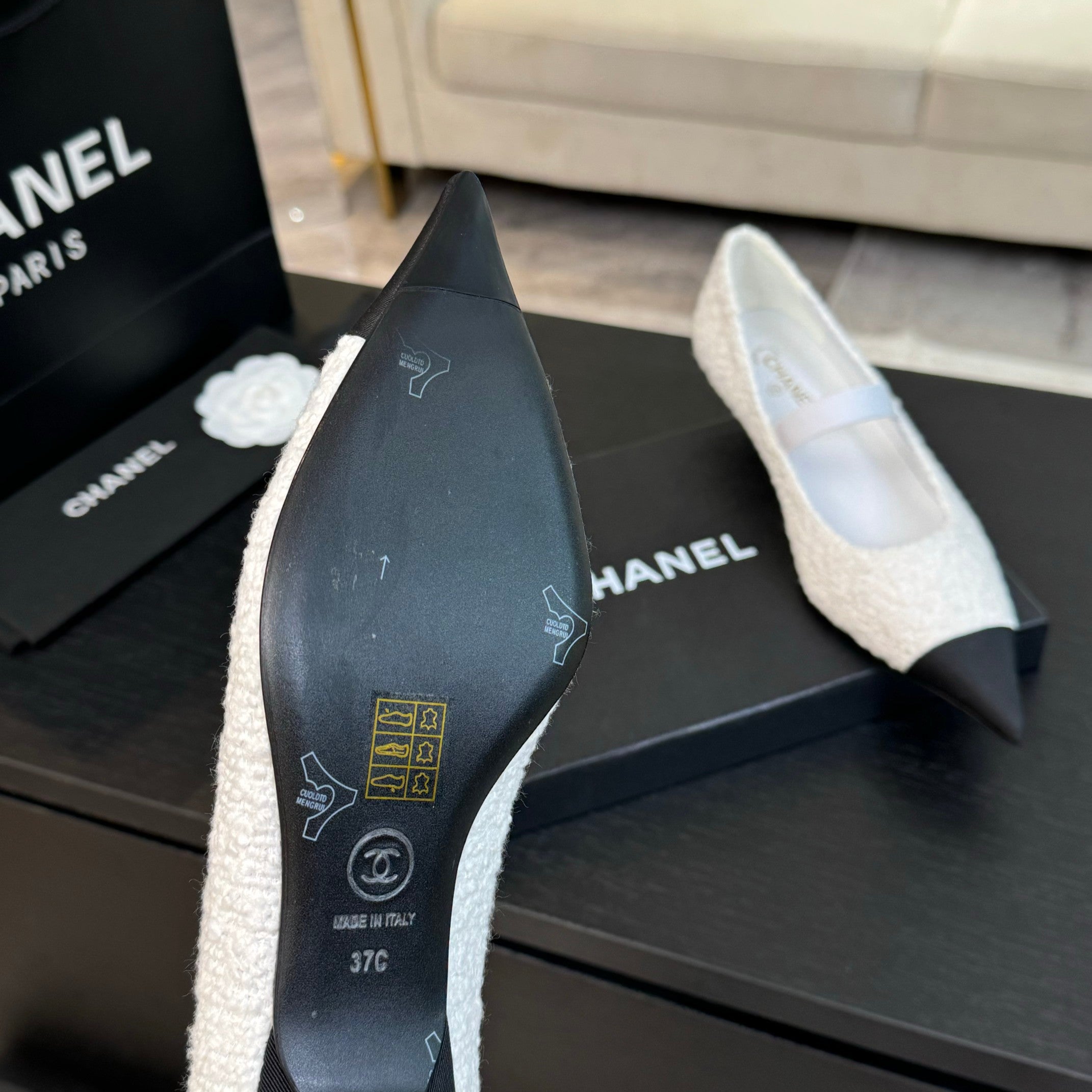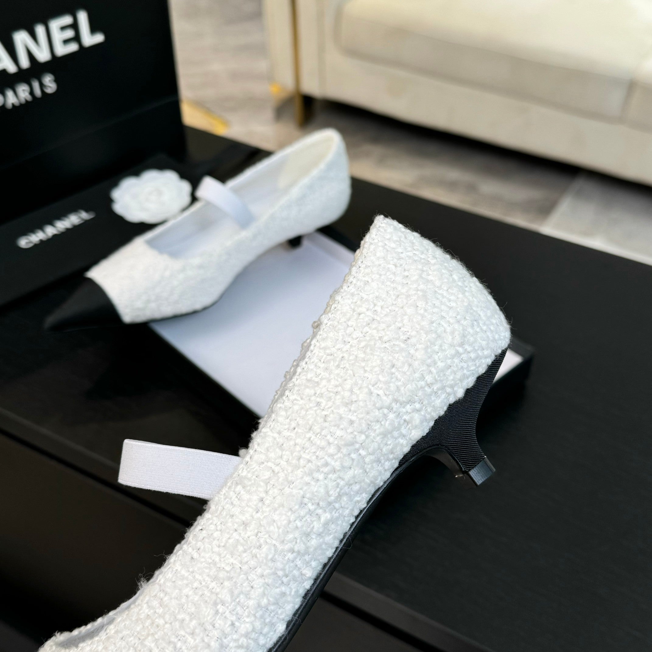 mary jane 35 pointed toe white tweed black grosgrain
