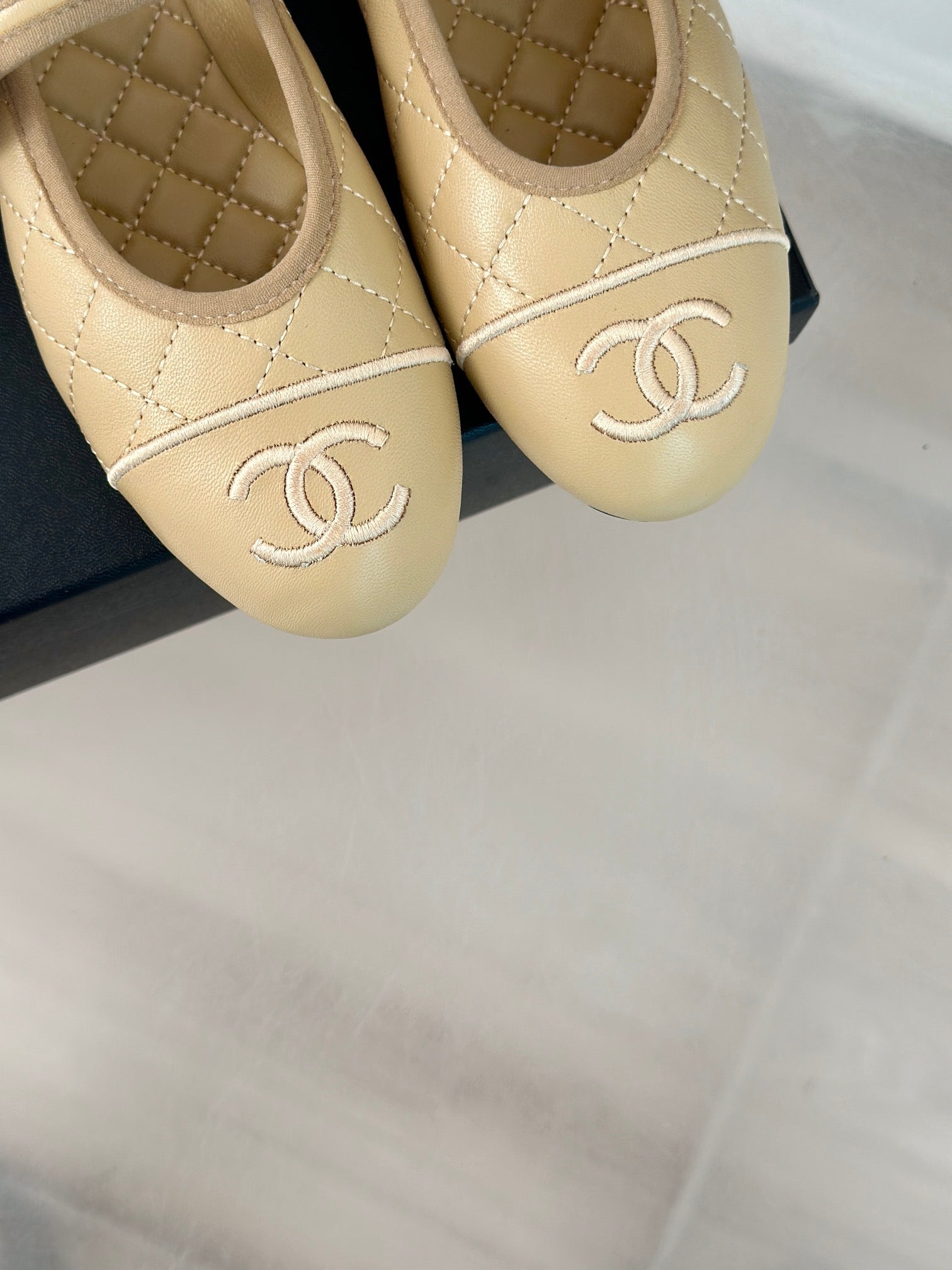 mary jane beige quilted lambskin