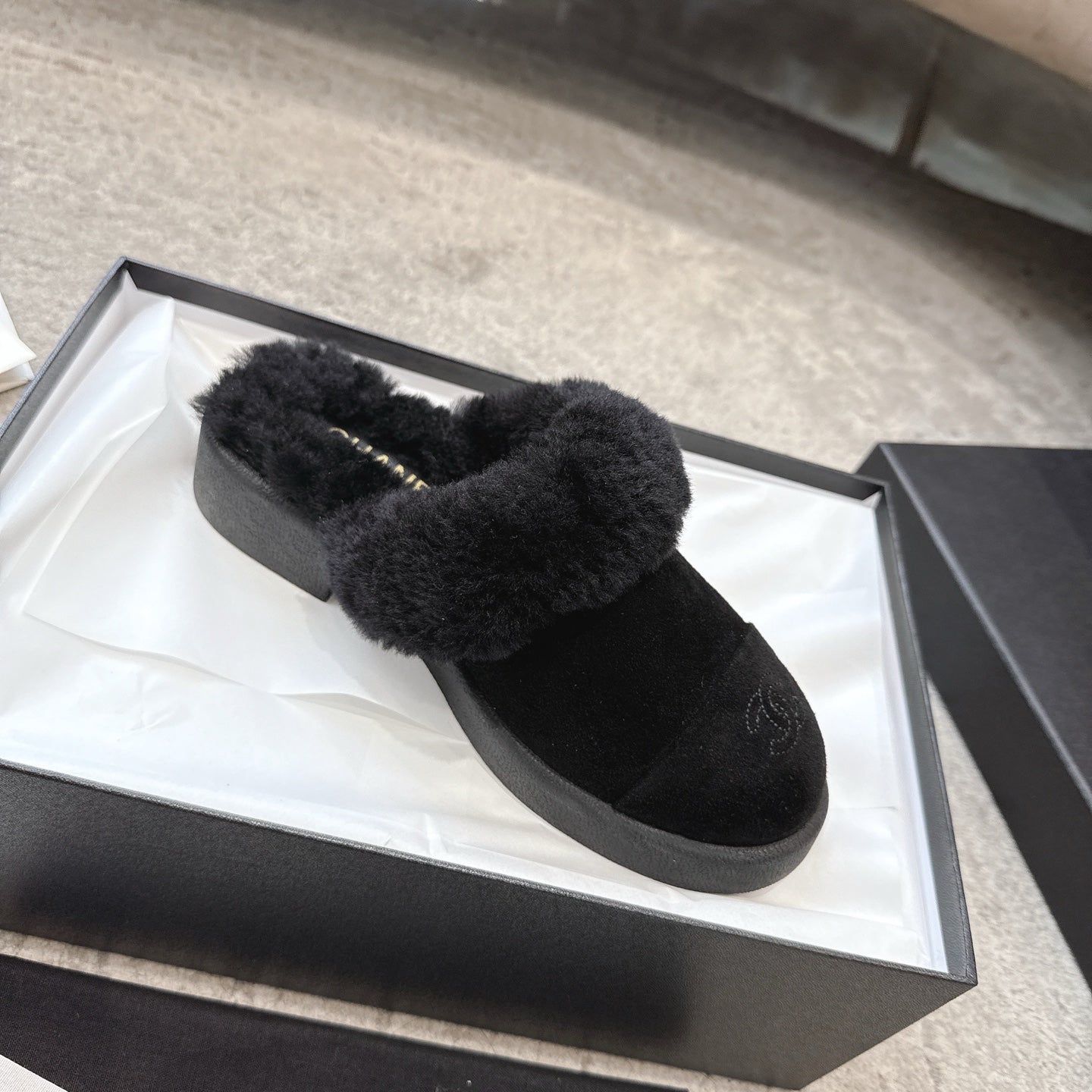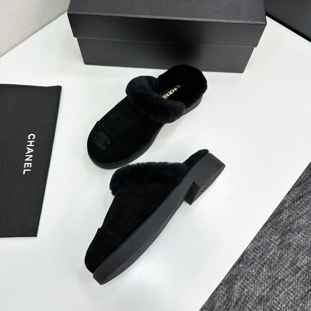 CC slipper double C rhinestone buckle black wool 512051