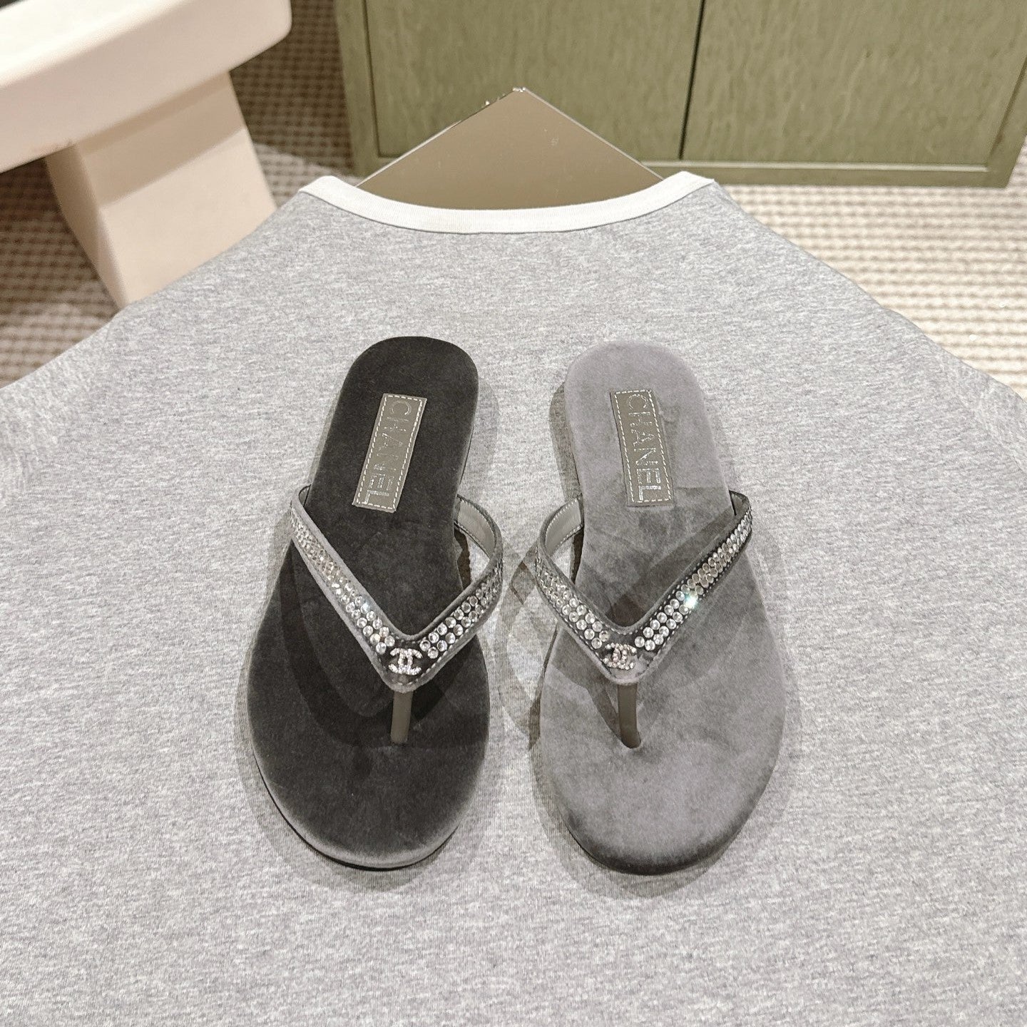 CC 25ss Rhinestone Thong Sandal Black Mix Grey Velvet 461635
