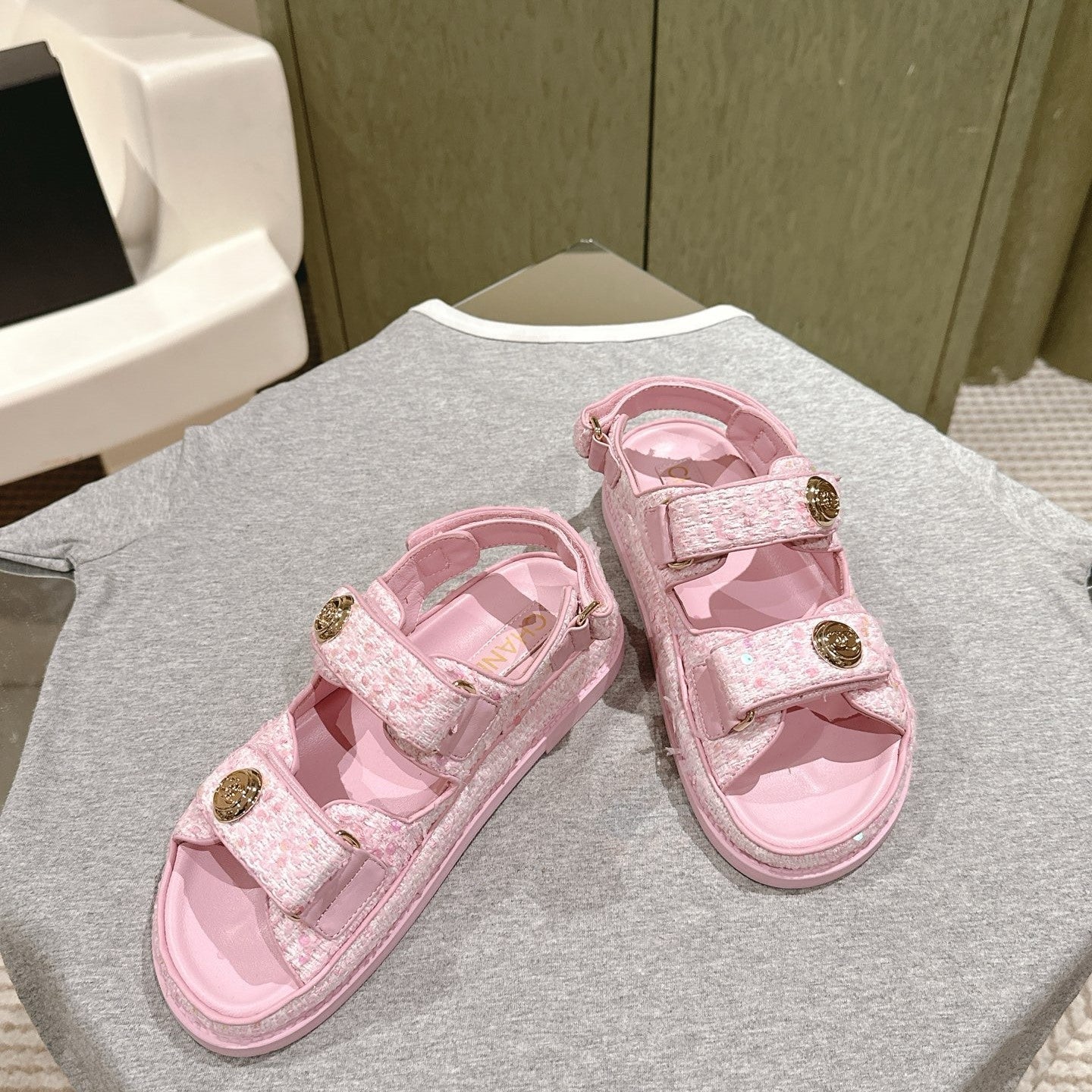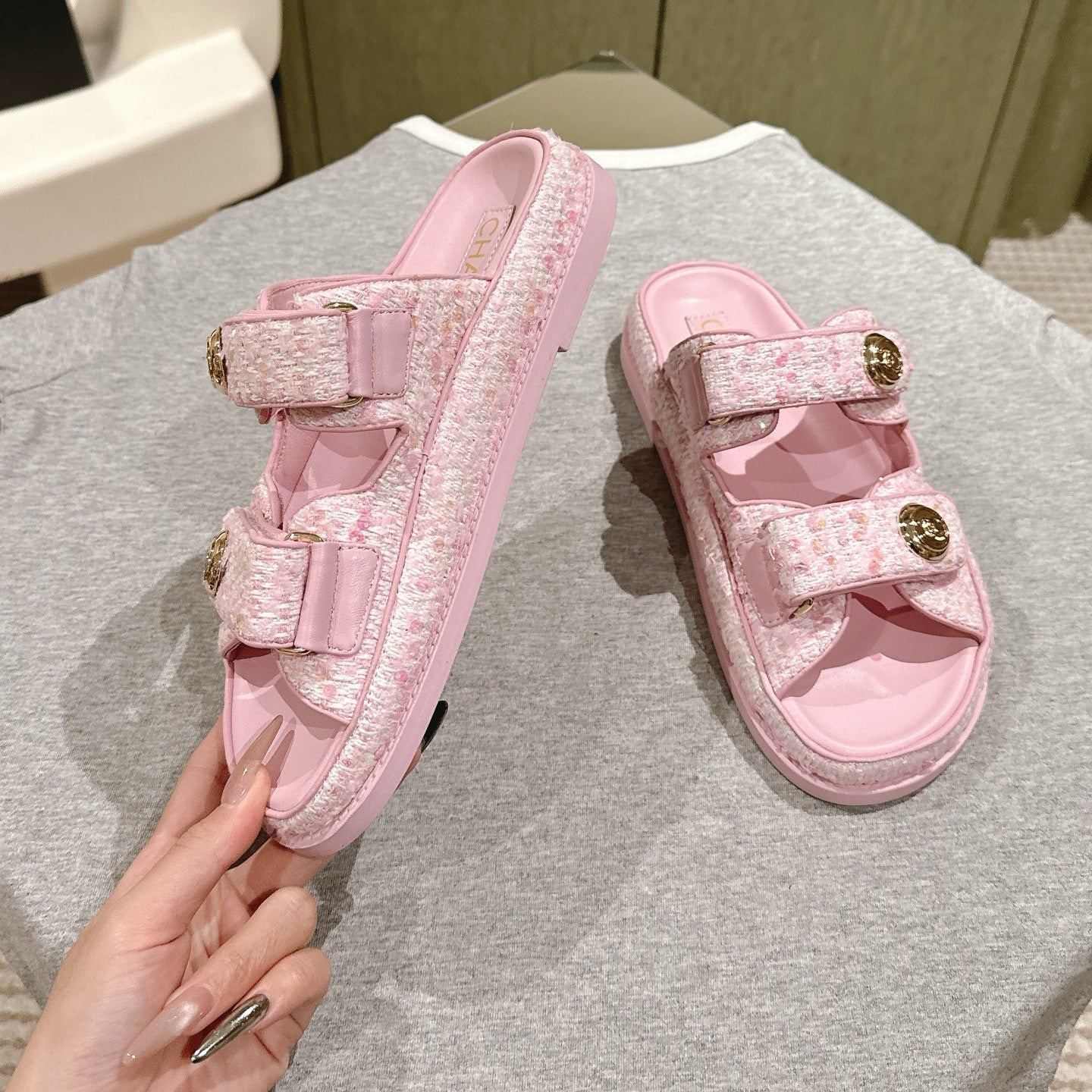 CC 25C Dad Sandals PInk White Tweed 462231