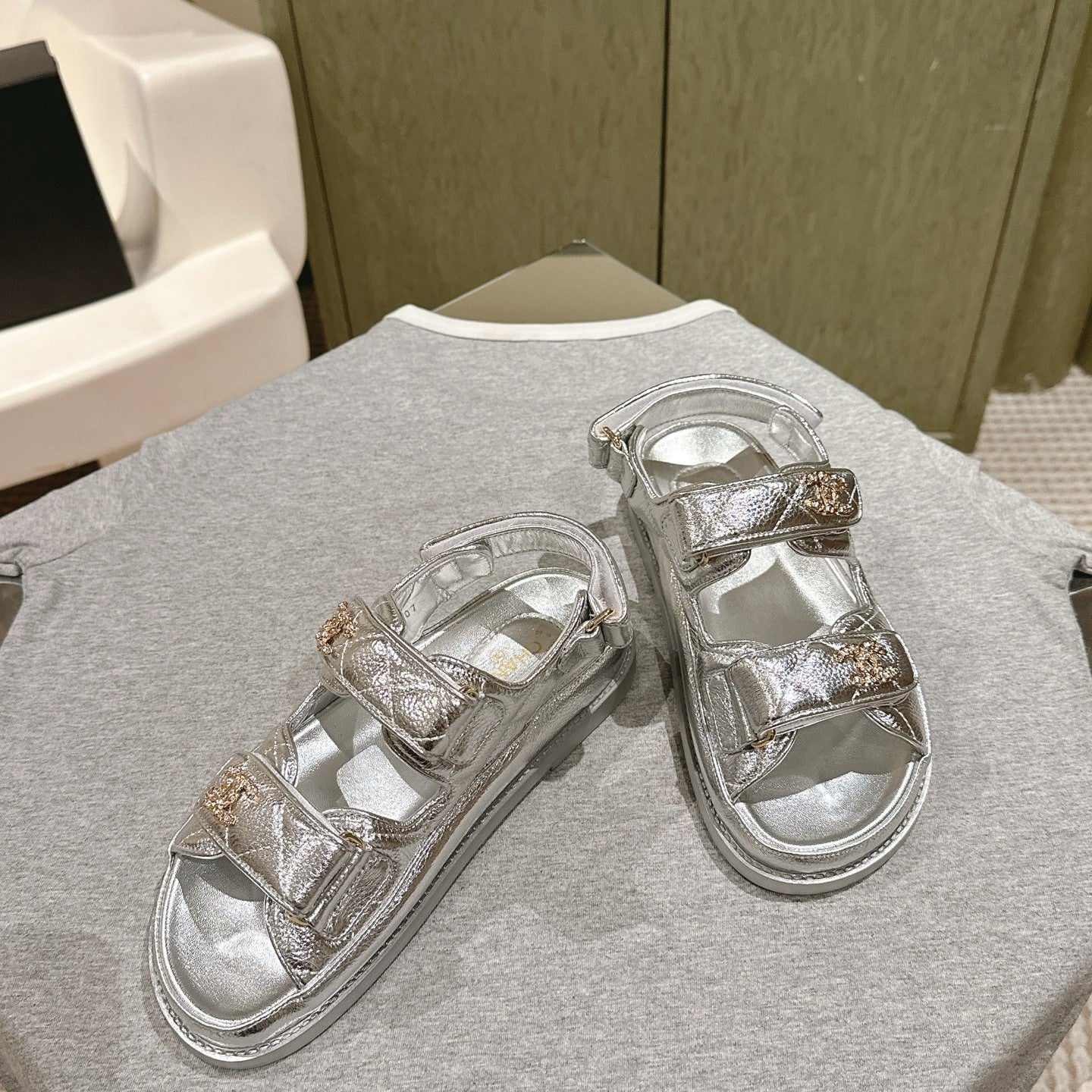 CC 25C Dad Sandals Silver Metalic Grained Calfskin 462236