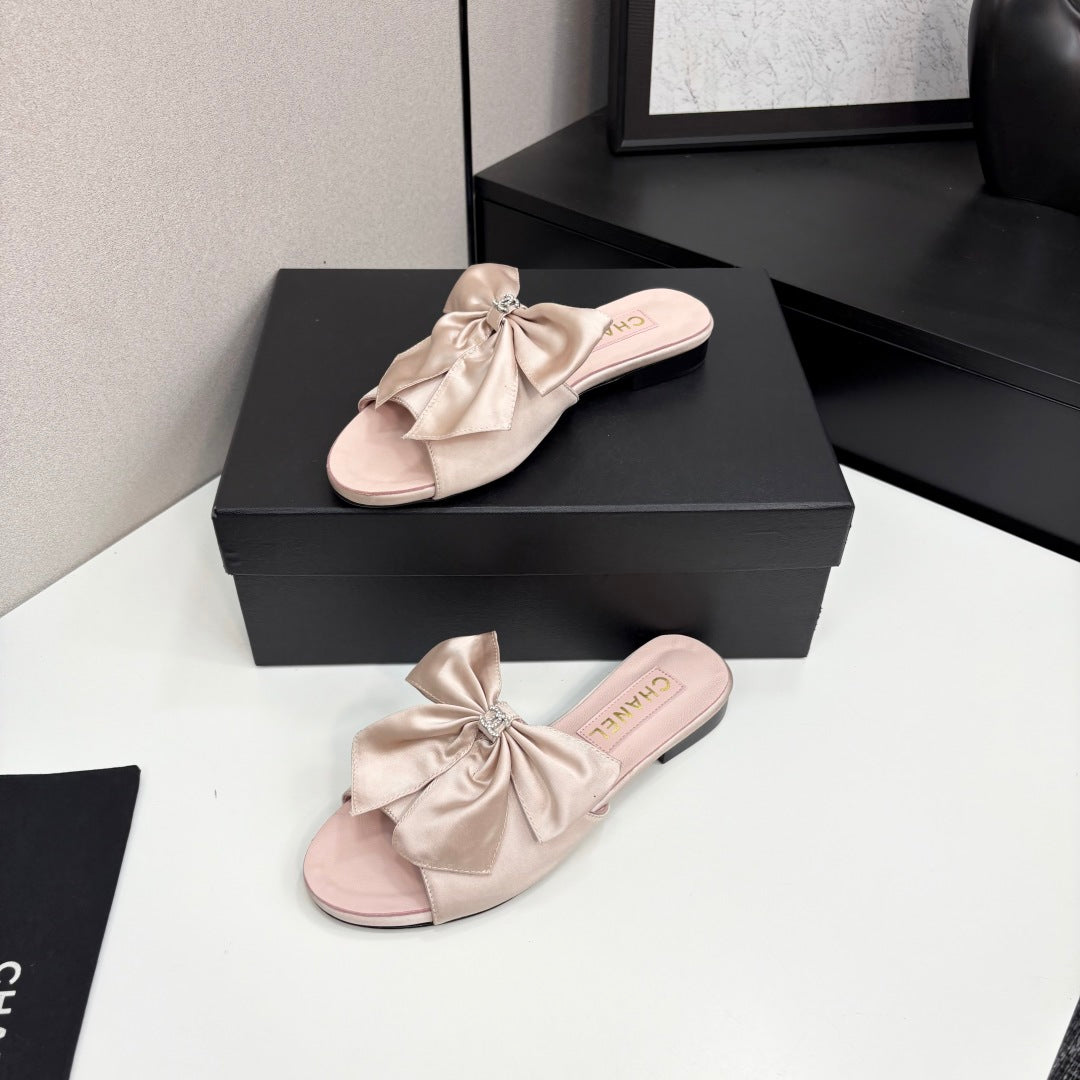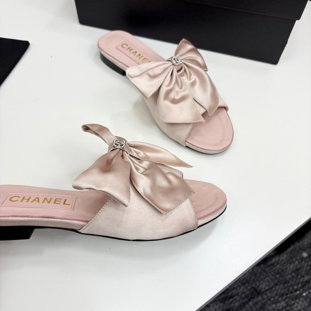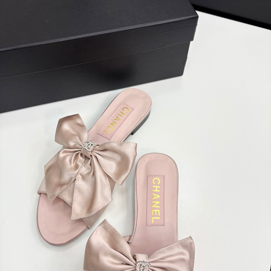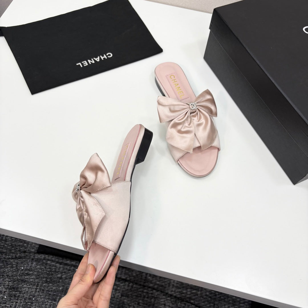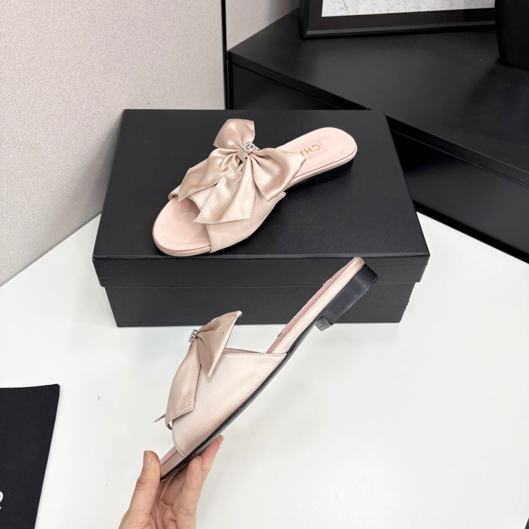 CC 25 Big Bow Mule Pink Satin And Sheepskin 368864