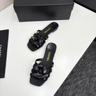 CC 25 Camellia Open Flat Mule Black Sheepskin 368847