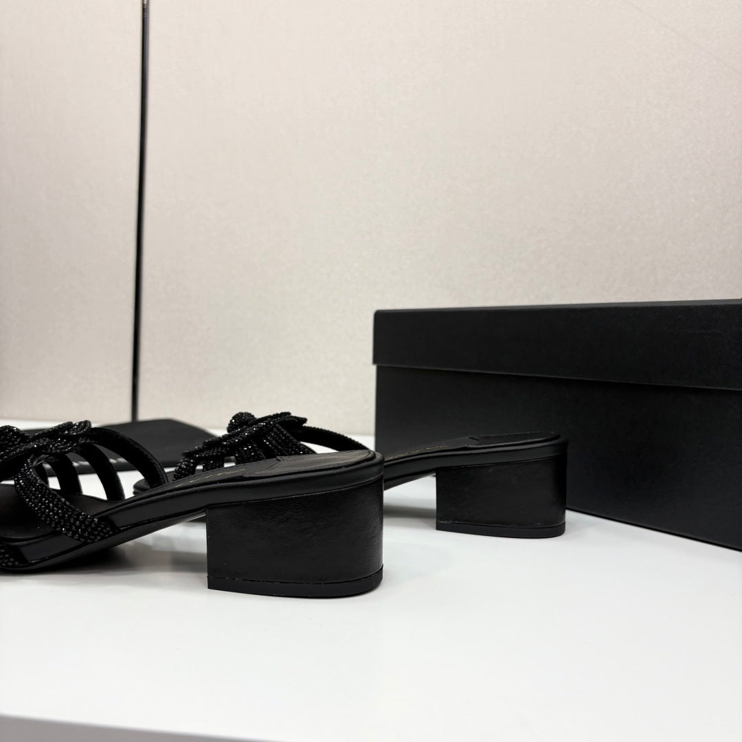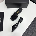 CC 25 Camellia Open Heel Mule Sandals 50mm Black Stone Grain And Sheepskin 368860