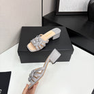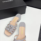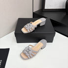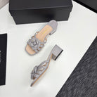 CC 25 Camellia Open Heel Mule Sandals 50mm Grey Beige Sheepskin And Fabric 368854