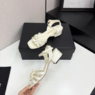CC 25 Camellia Open Heel Sandals 50mm Ivory Sheepskin And Fabric 368812