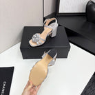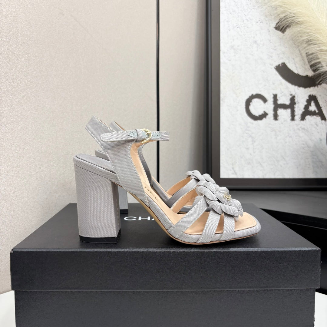 CC 25 Camellia Open Heel Sandals 90mm Grey Beige Sheepskin And Fabric 368817