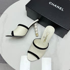 CC 25 High Heel Slippers 85mm White Black Sheepskin 368789