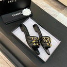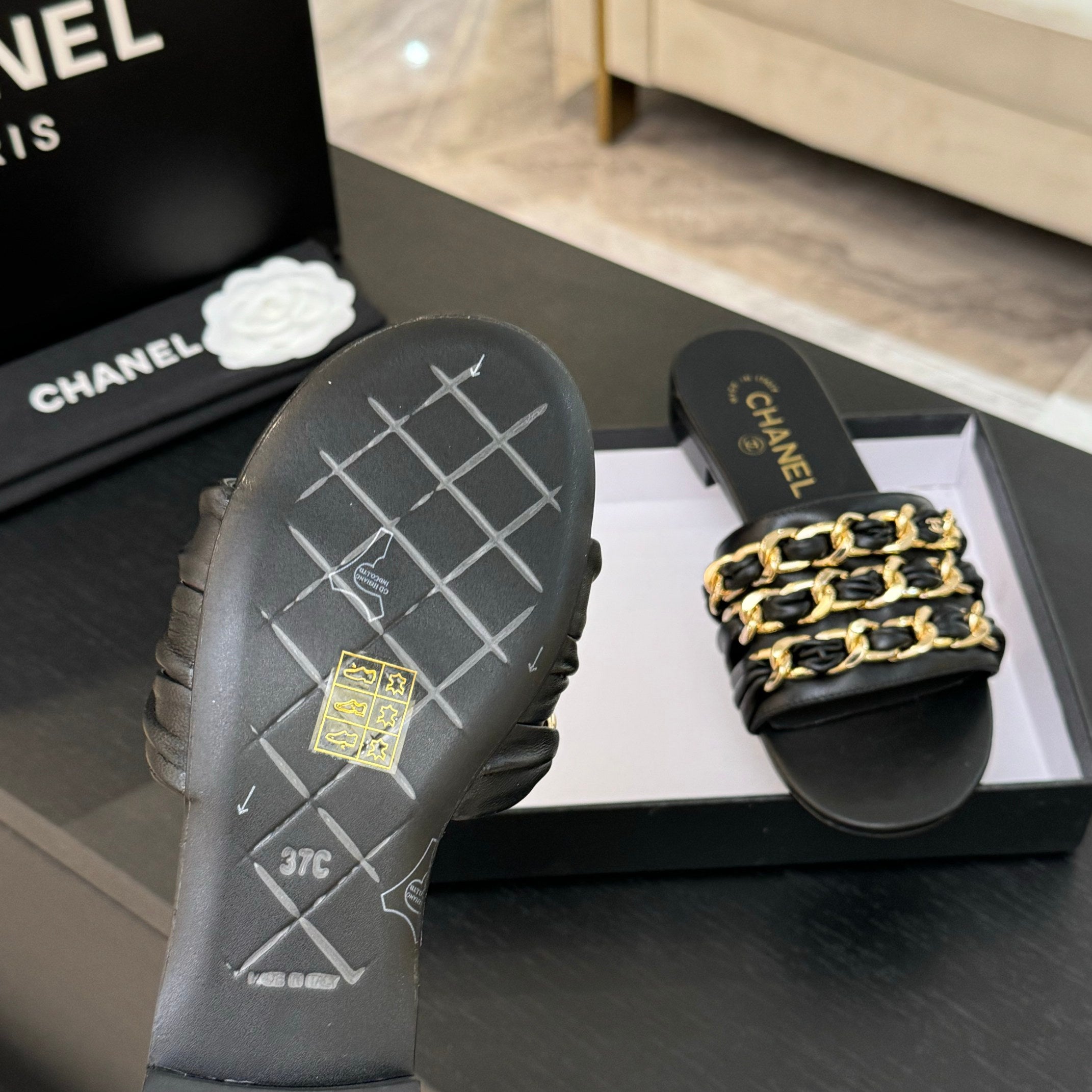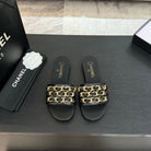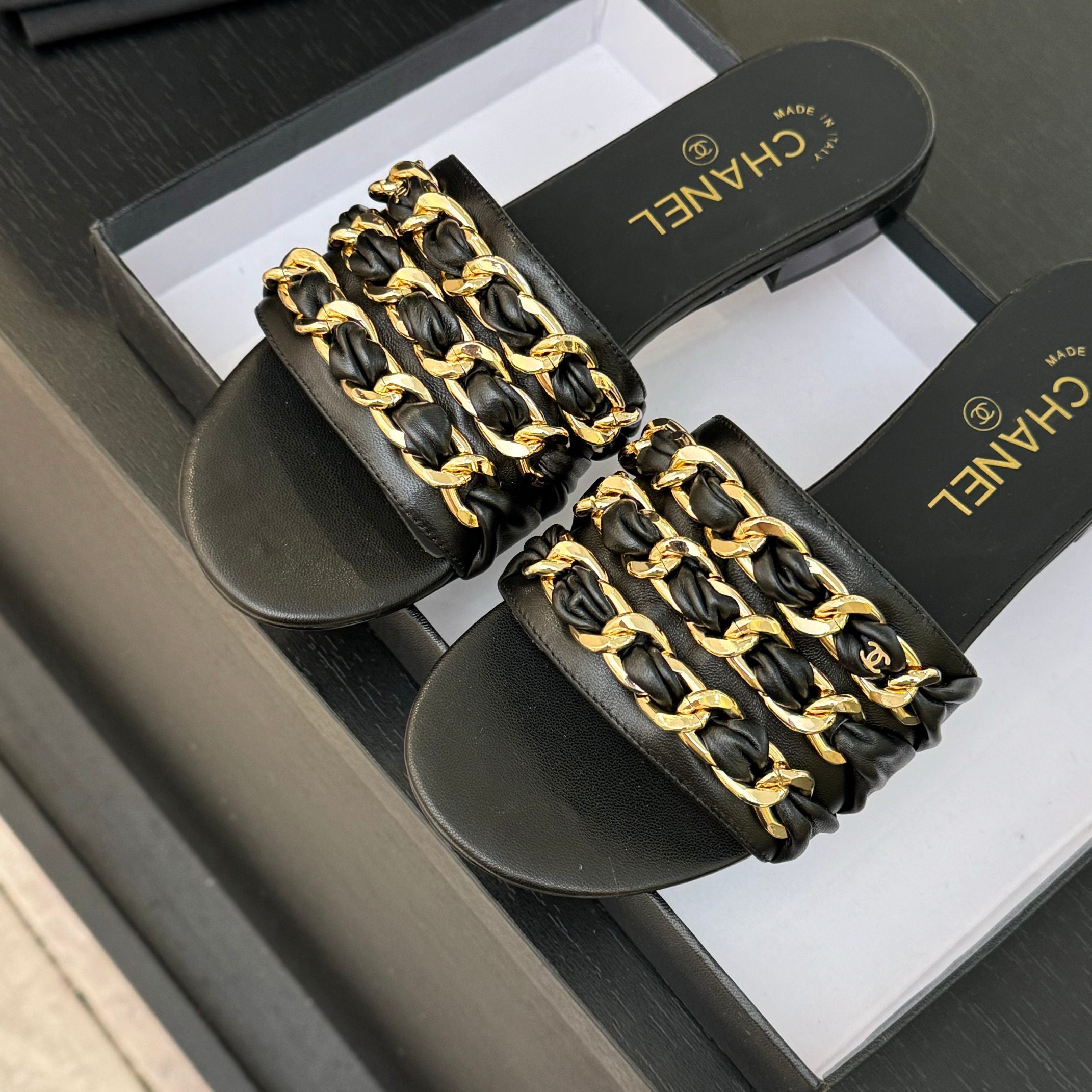 CC 25B Flat Mule Sandals Black Sheepskin With Chain 373814