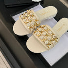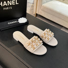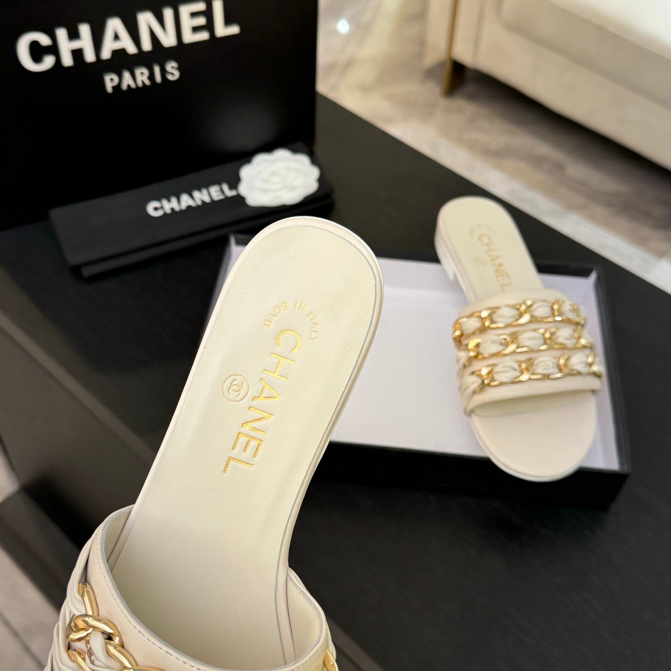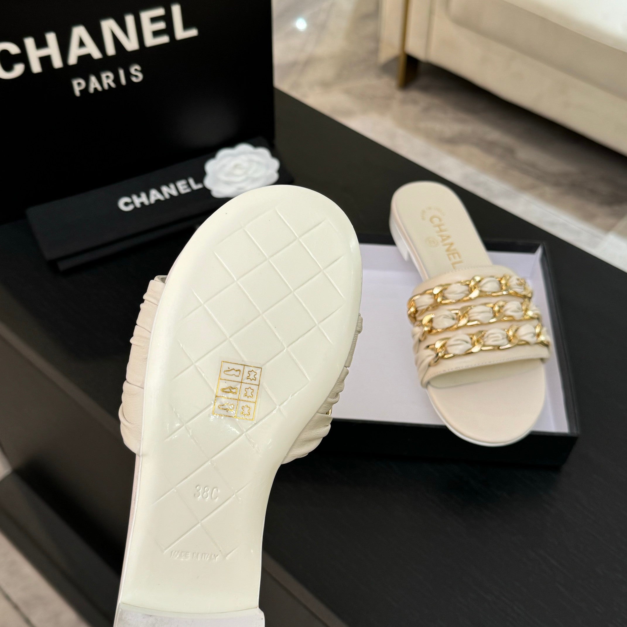 CC 25B Flat Mule Sandals Ivory Sheepskin With Chain 373815