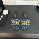CC 25B Flat Mule Sandals Navy Blue Denim With Chain 373812