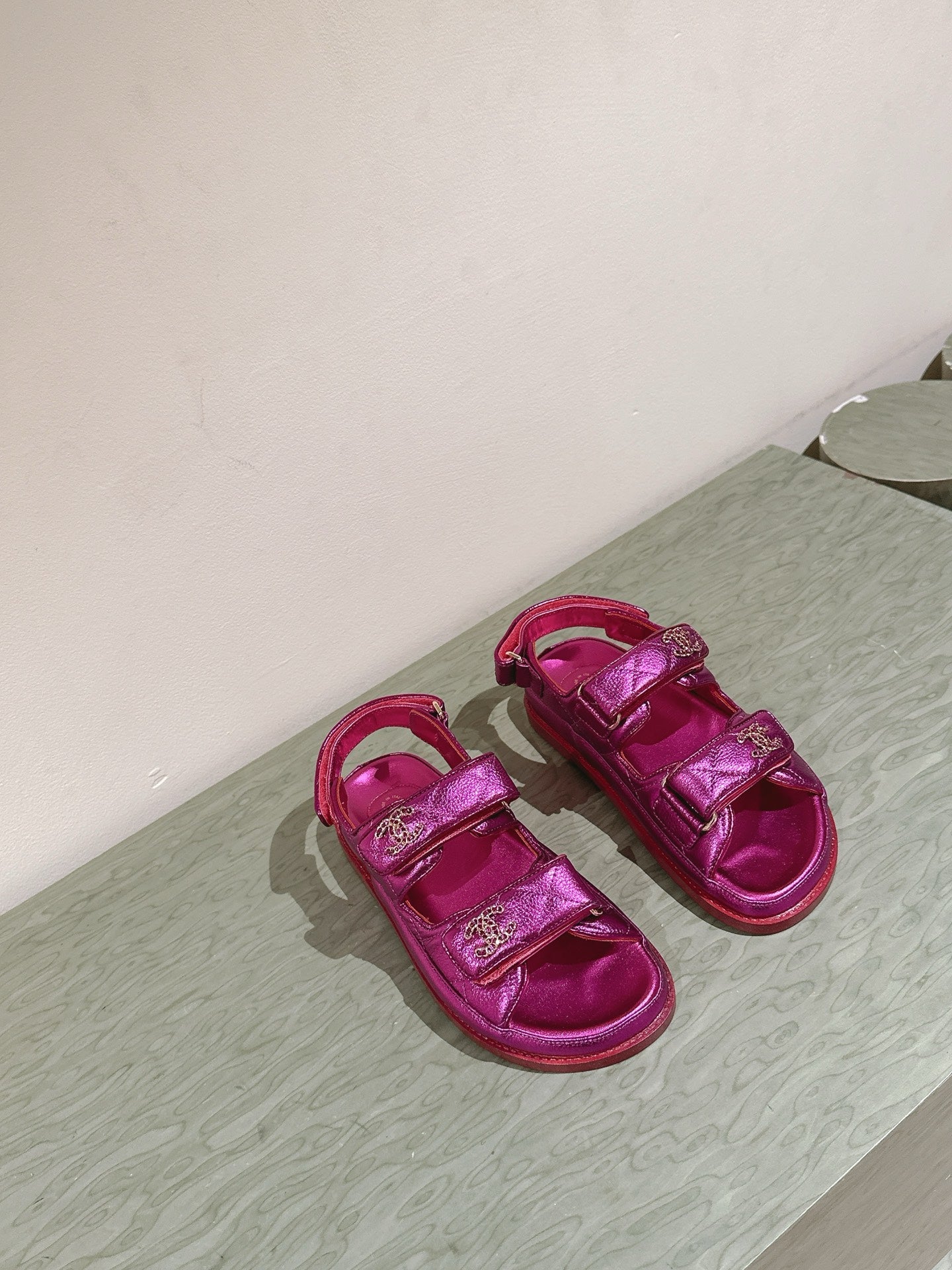 CC 25C Dad Sandals Pink Metalic Grained Calfskin 462233