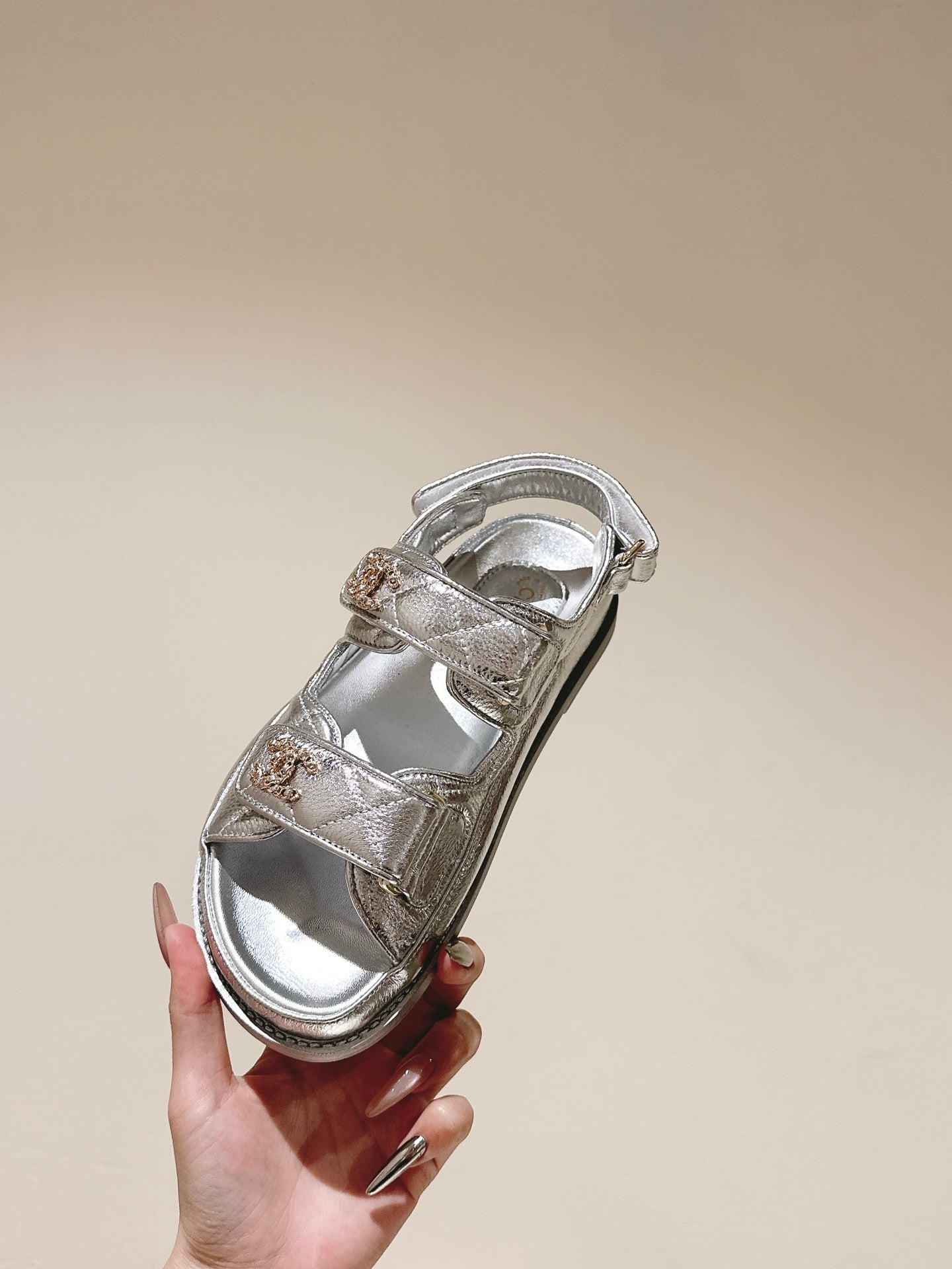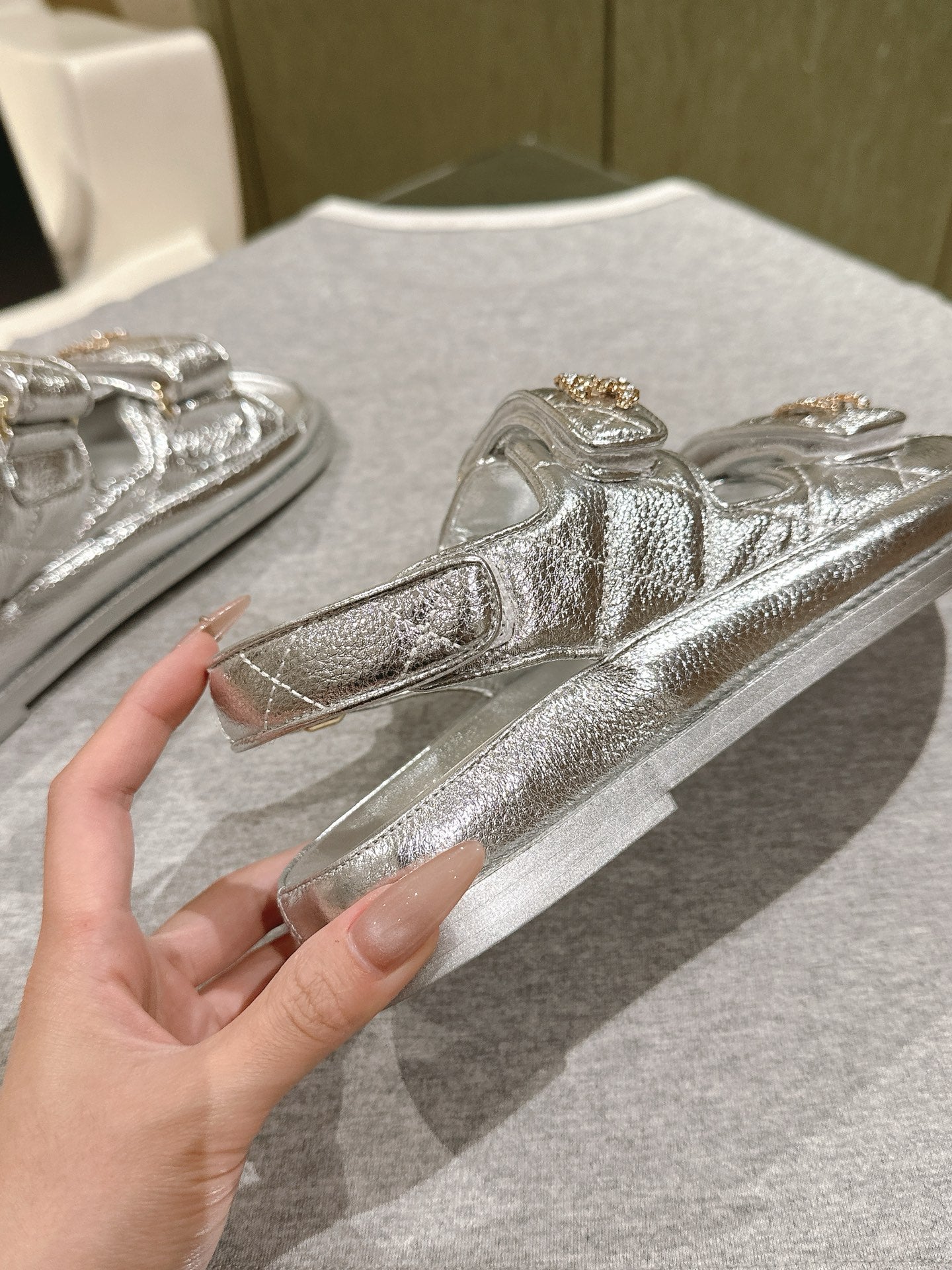 CC 25C Dad Sandals Silver Metalic Grained Calfskin 462236