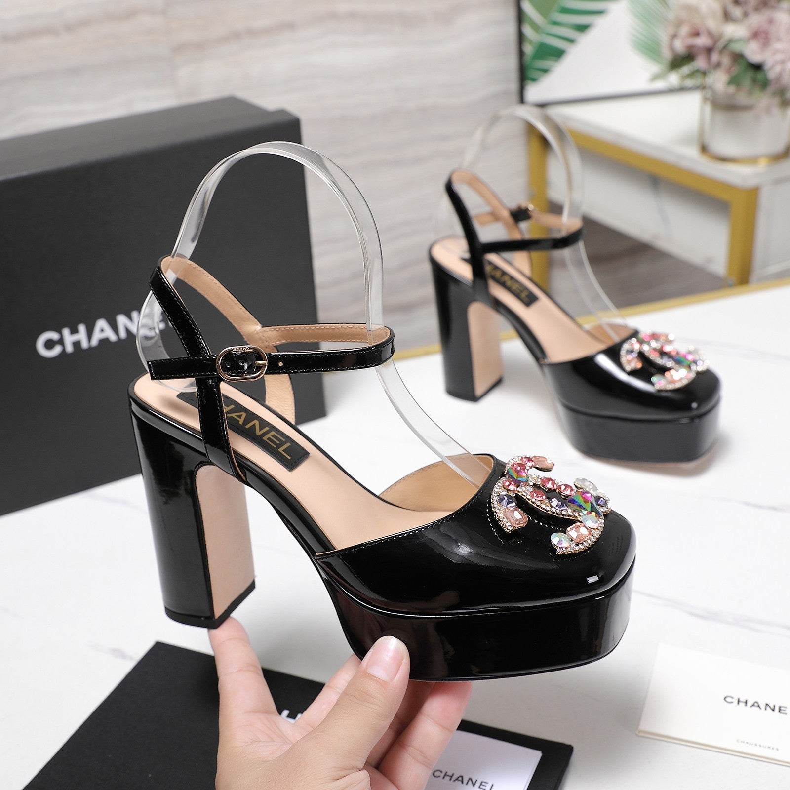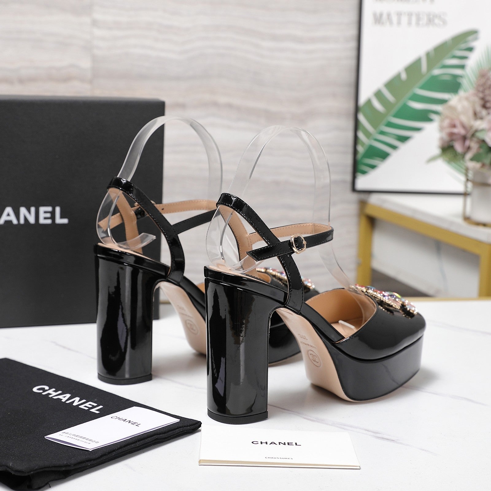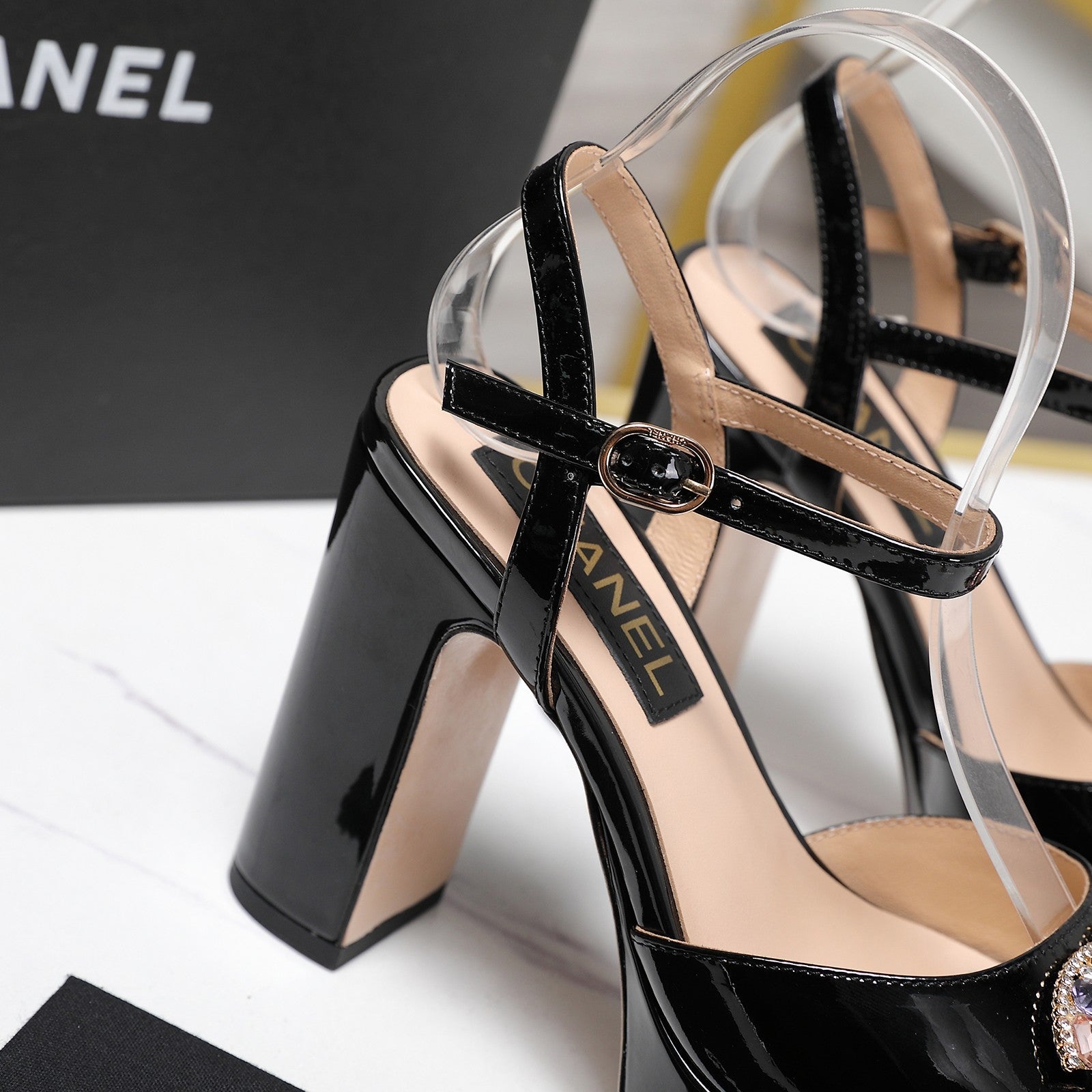 CC 25s Multicolor Stones Buckle Sandals 110mm Black Patent Leather & Sheepskin 425827