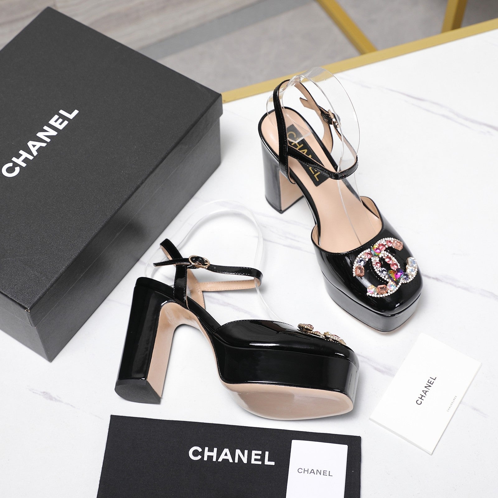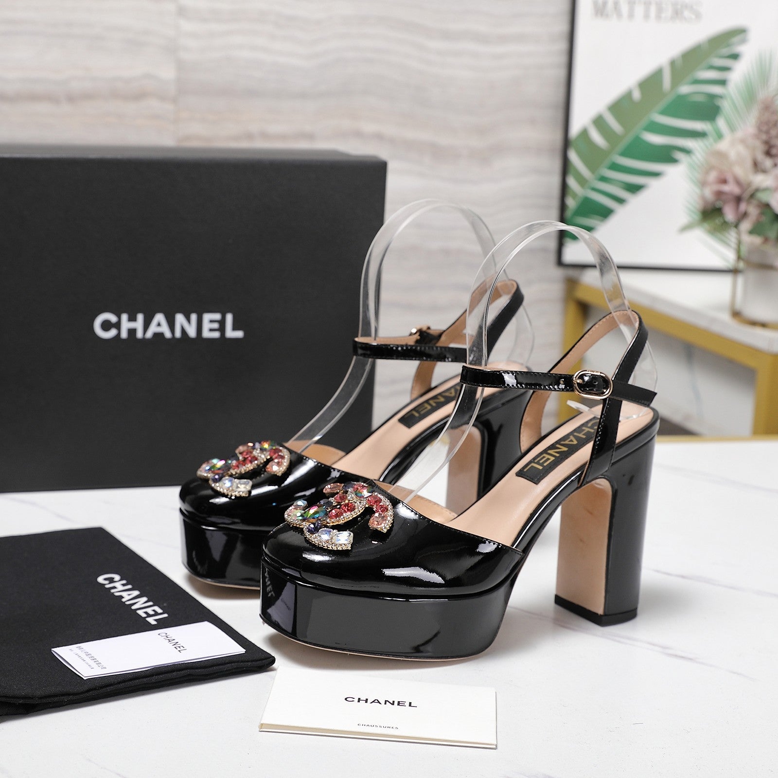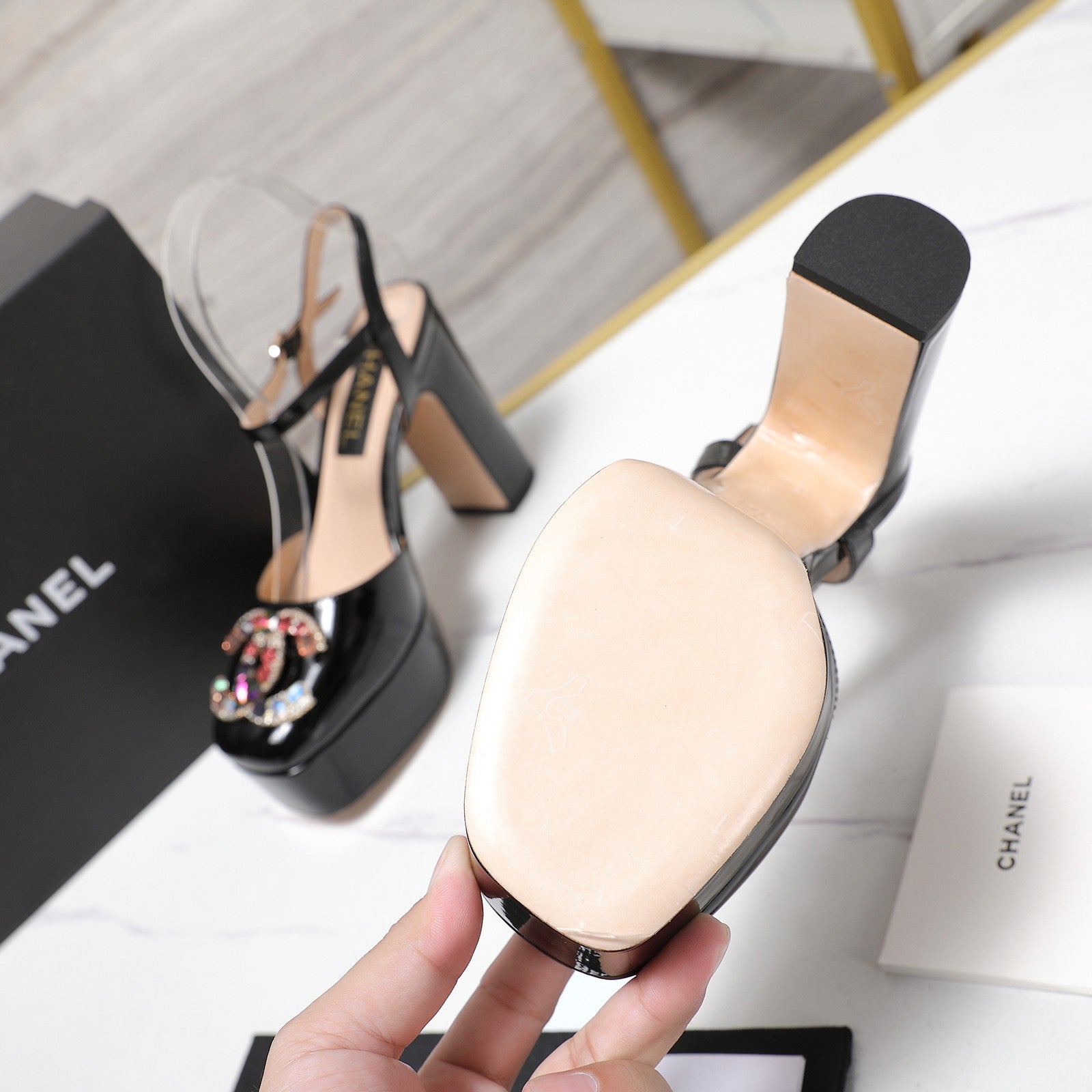 CC 25s Multicolor Stones Buckle Sandals 110mm Black Patent Leather & Sheepskin 425827