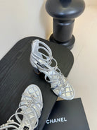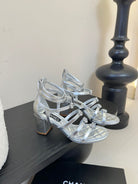 CC 25SS Camellia Multi Straps Heel Sandal 60mm Silver Metallic Sheepskin 351436