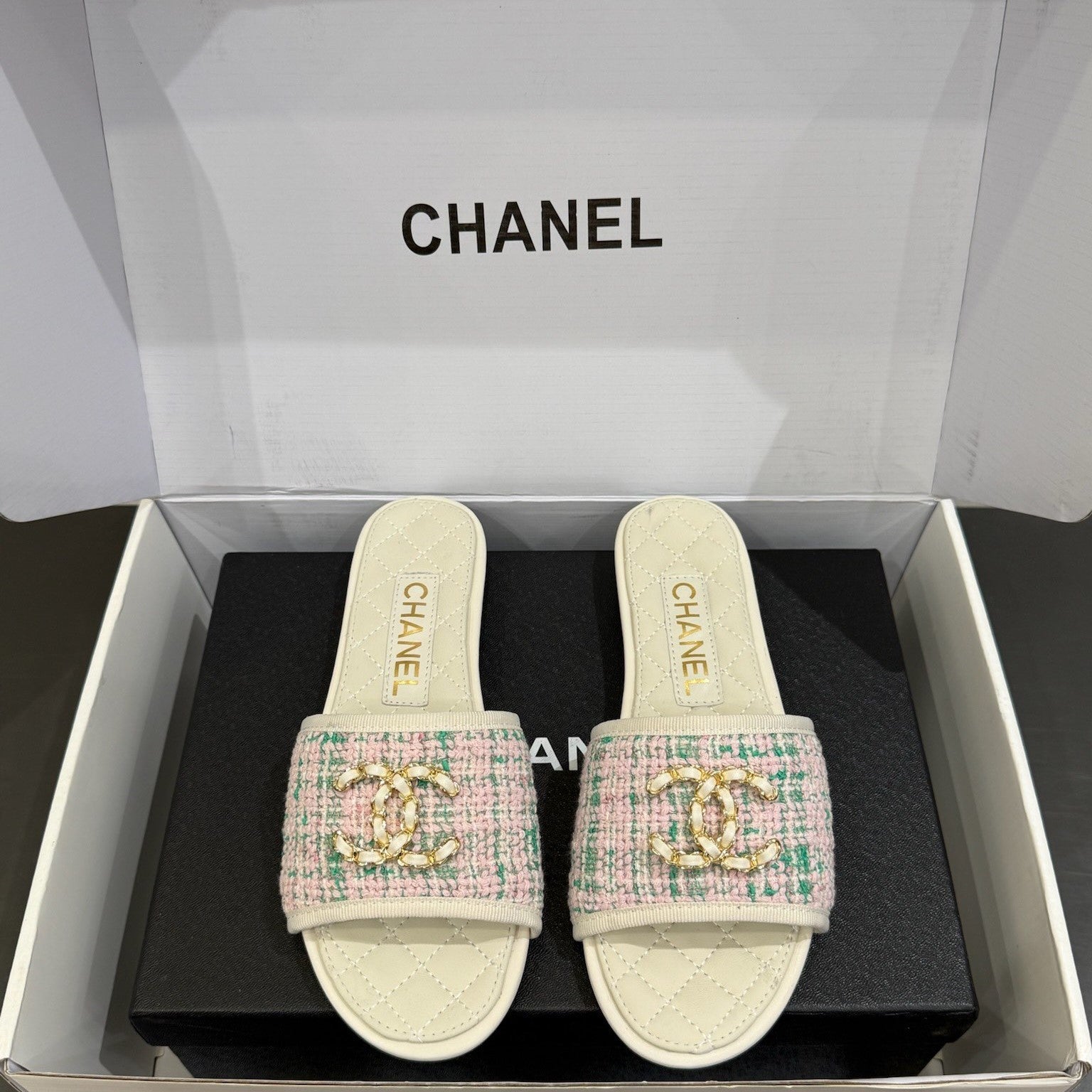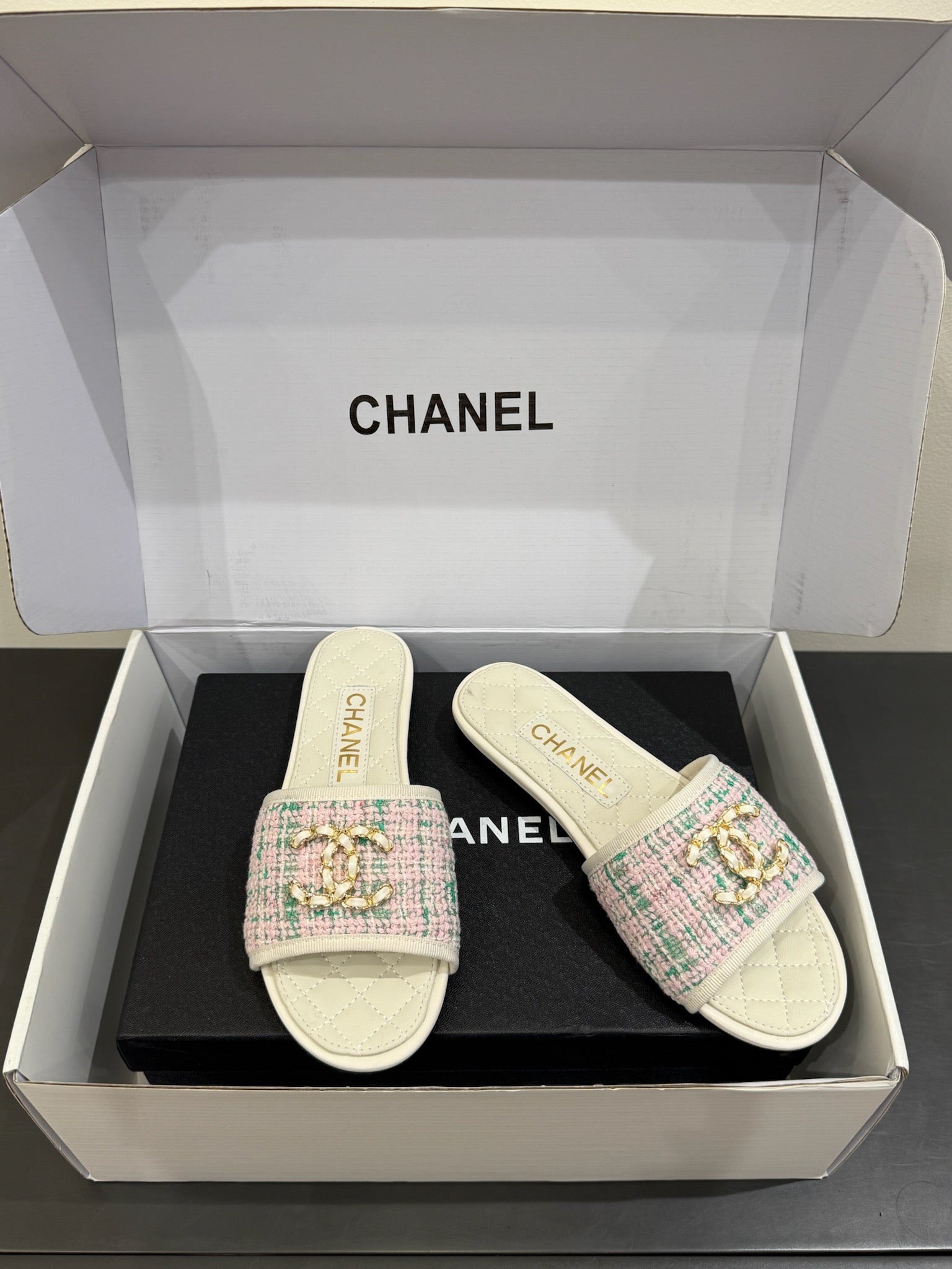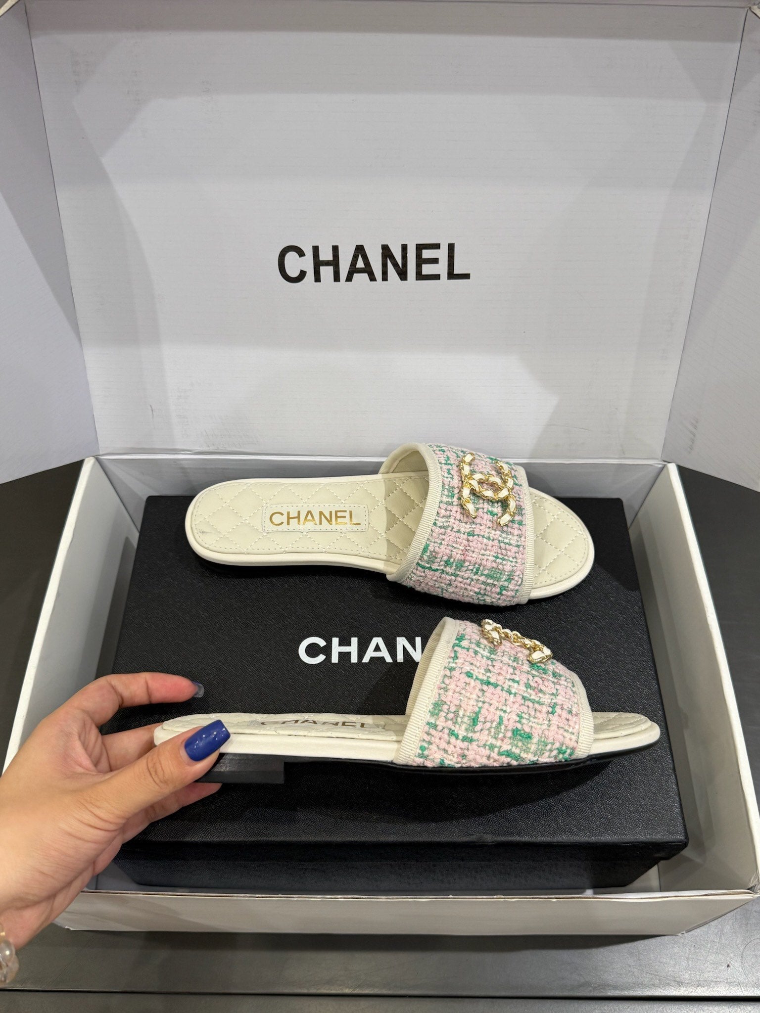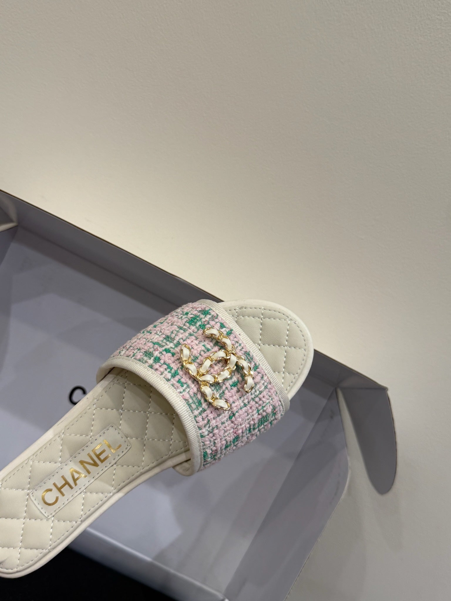 CC 25ss Chain Flat Slippers Multicolor Cowhide & Sheepskin 417562