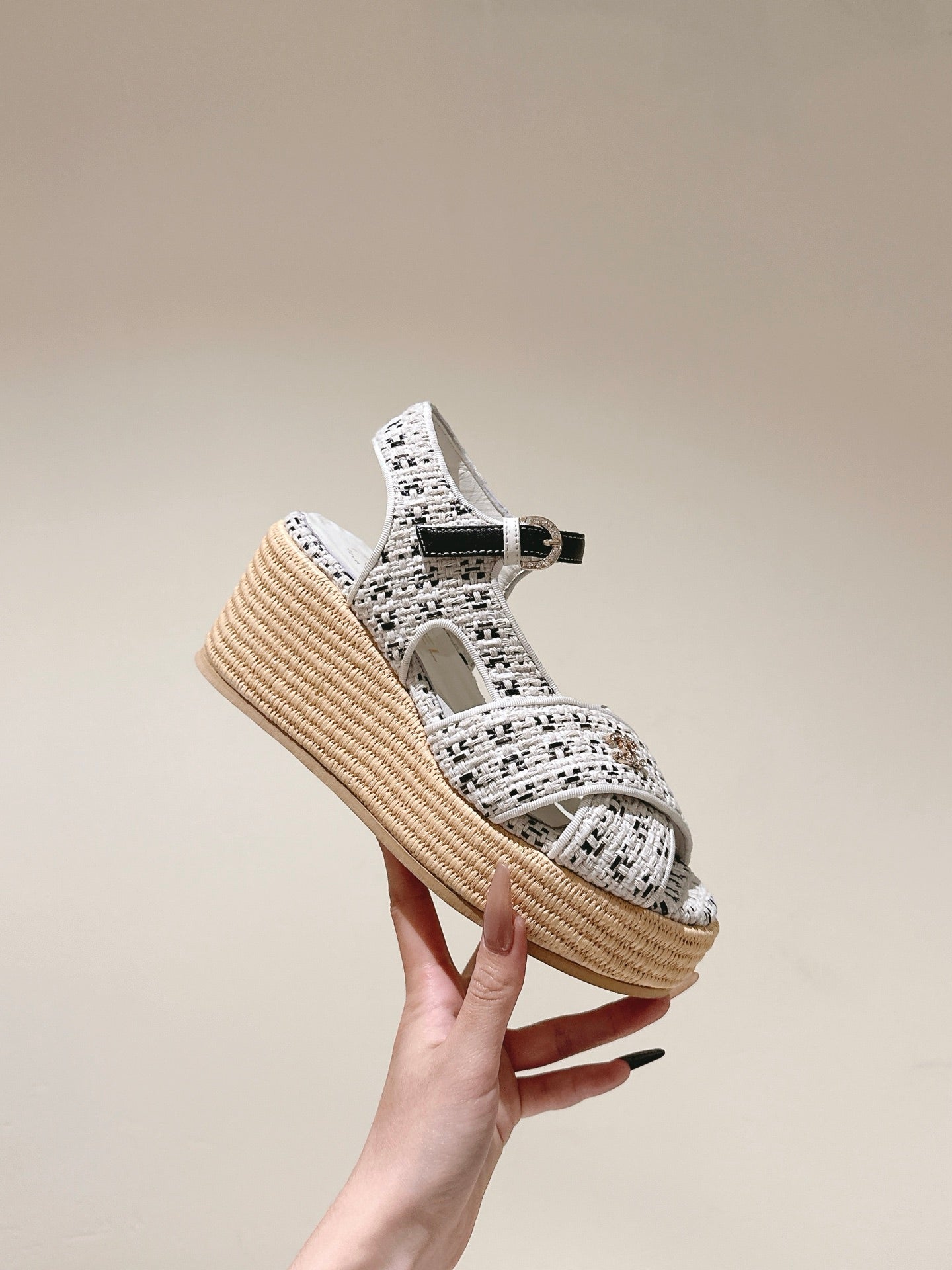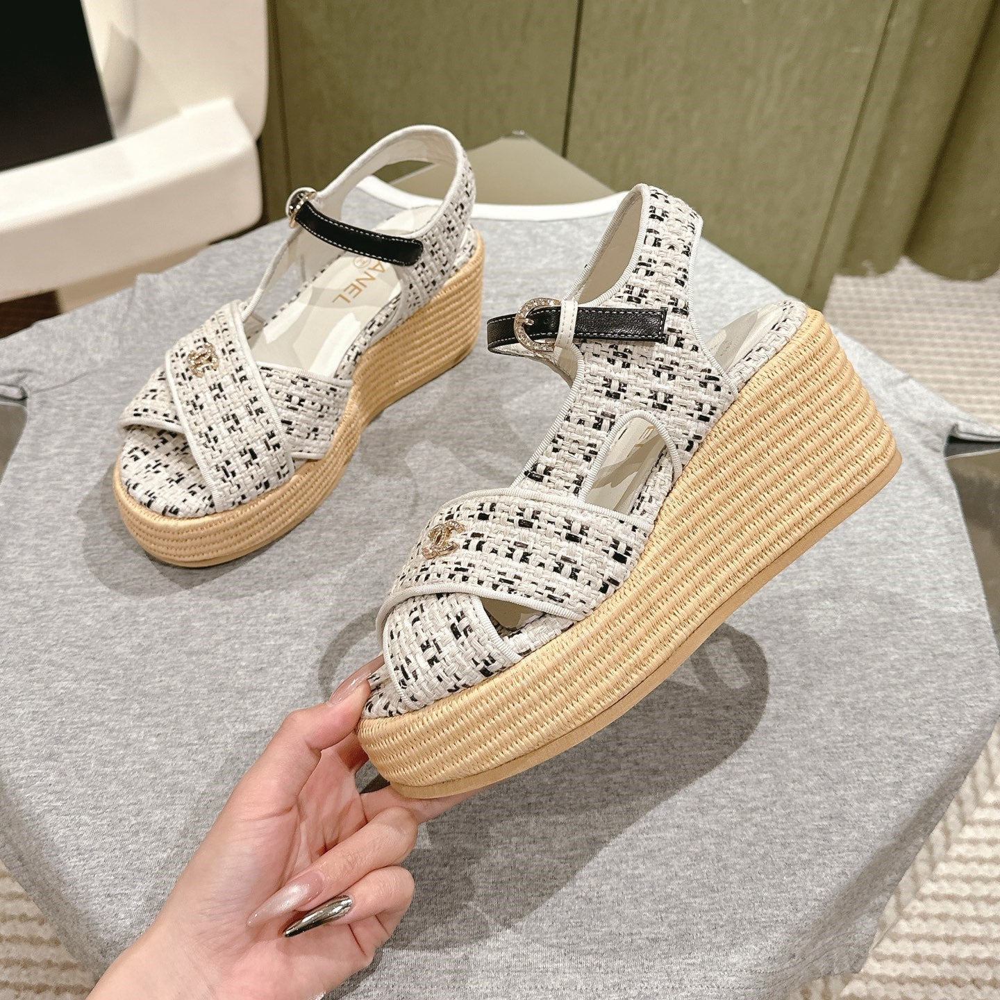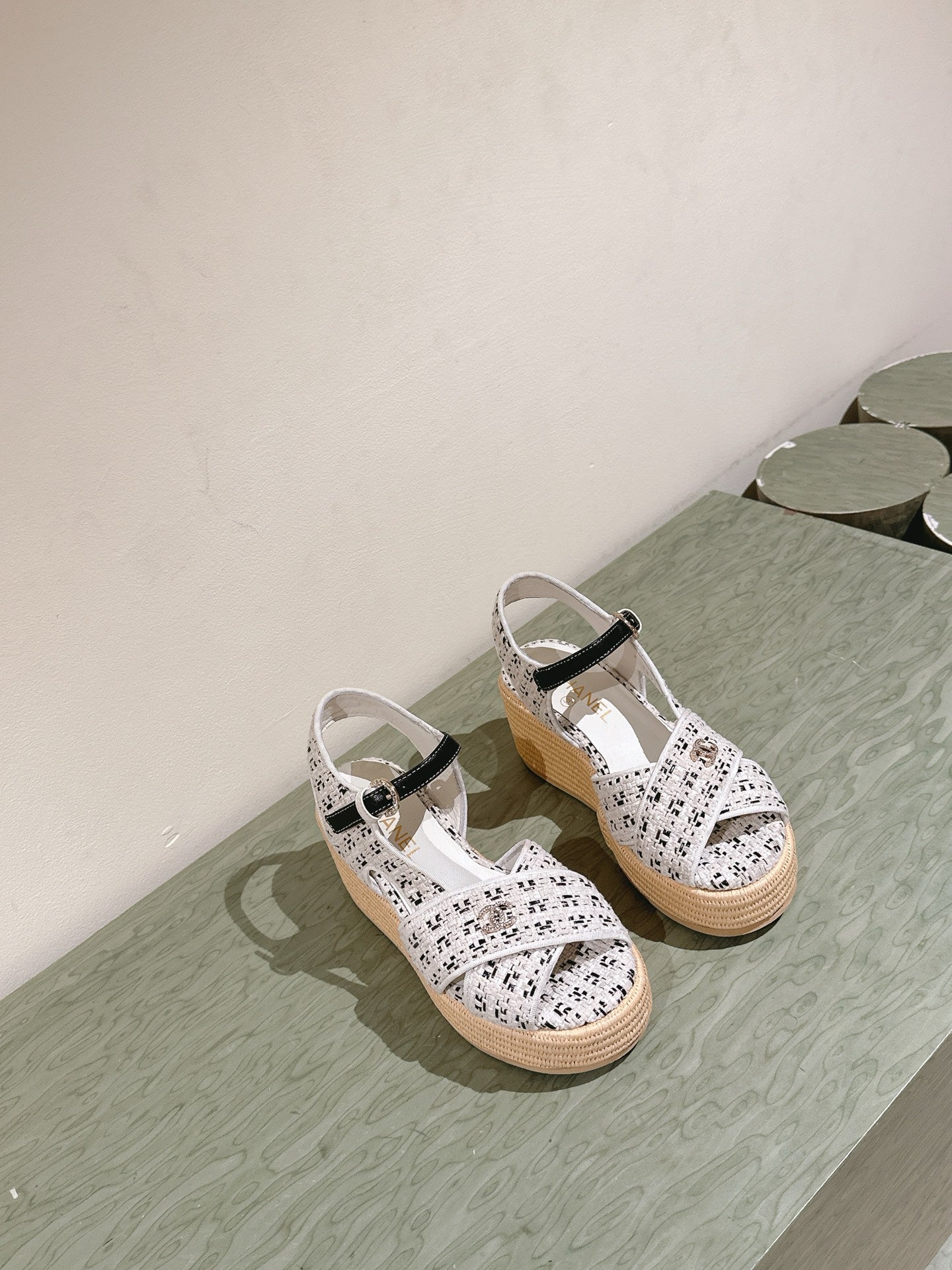 CC 25ss Espadrille Sandals 85mm Black Colorful Tweed Cowhide 462246