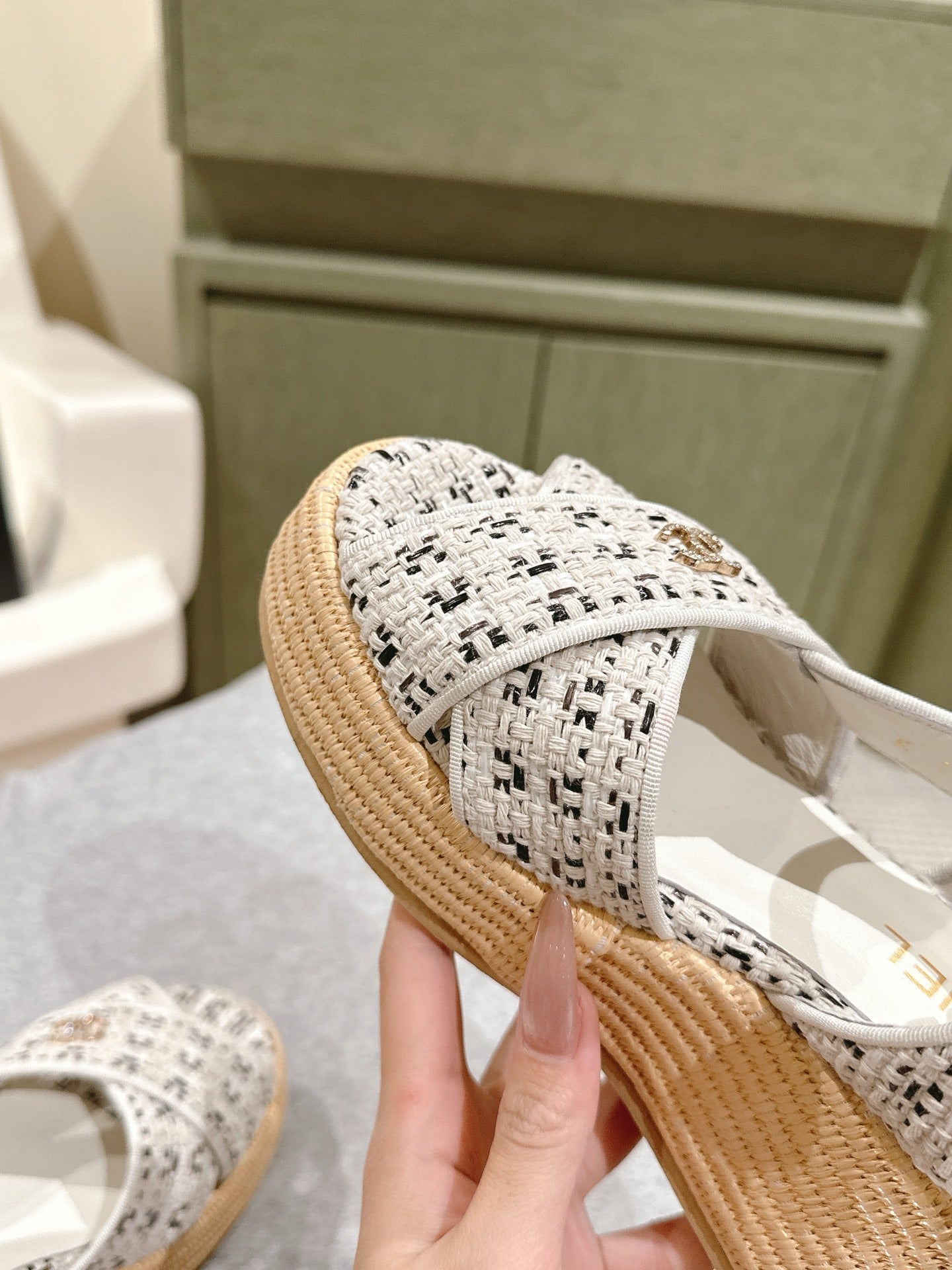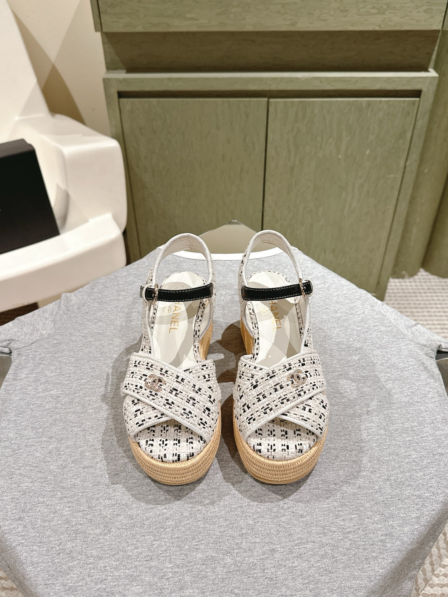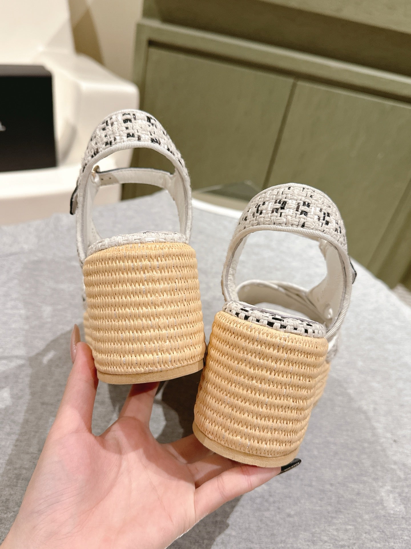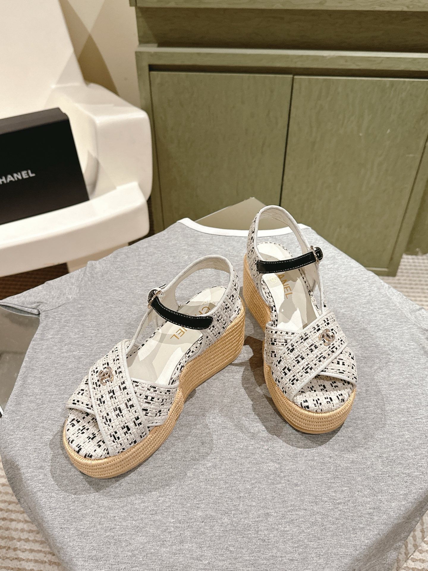CC 25ss Espadrille Sandals 85mm Black Colorful Tweed Cowhide 462246