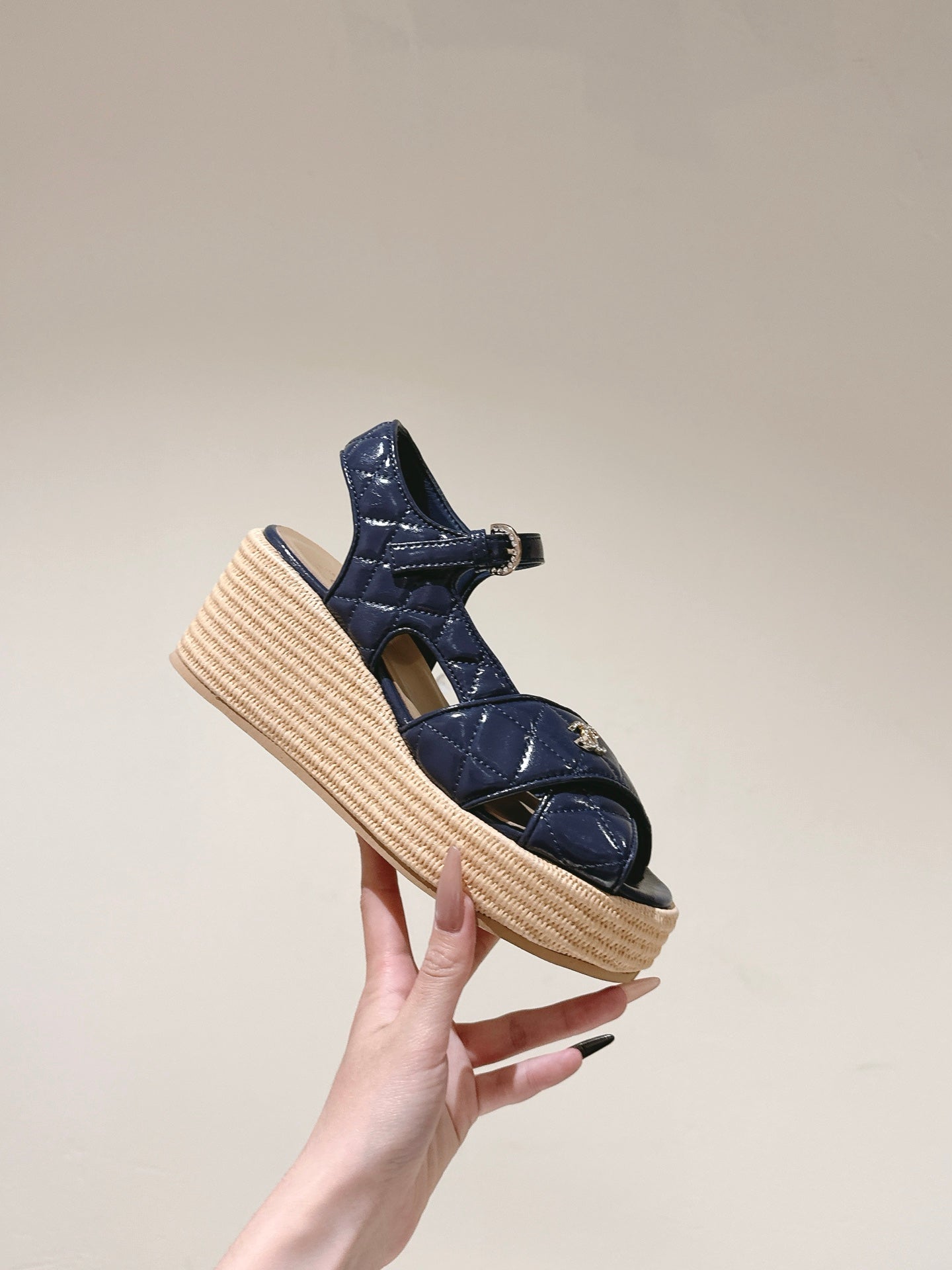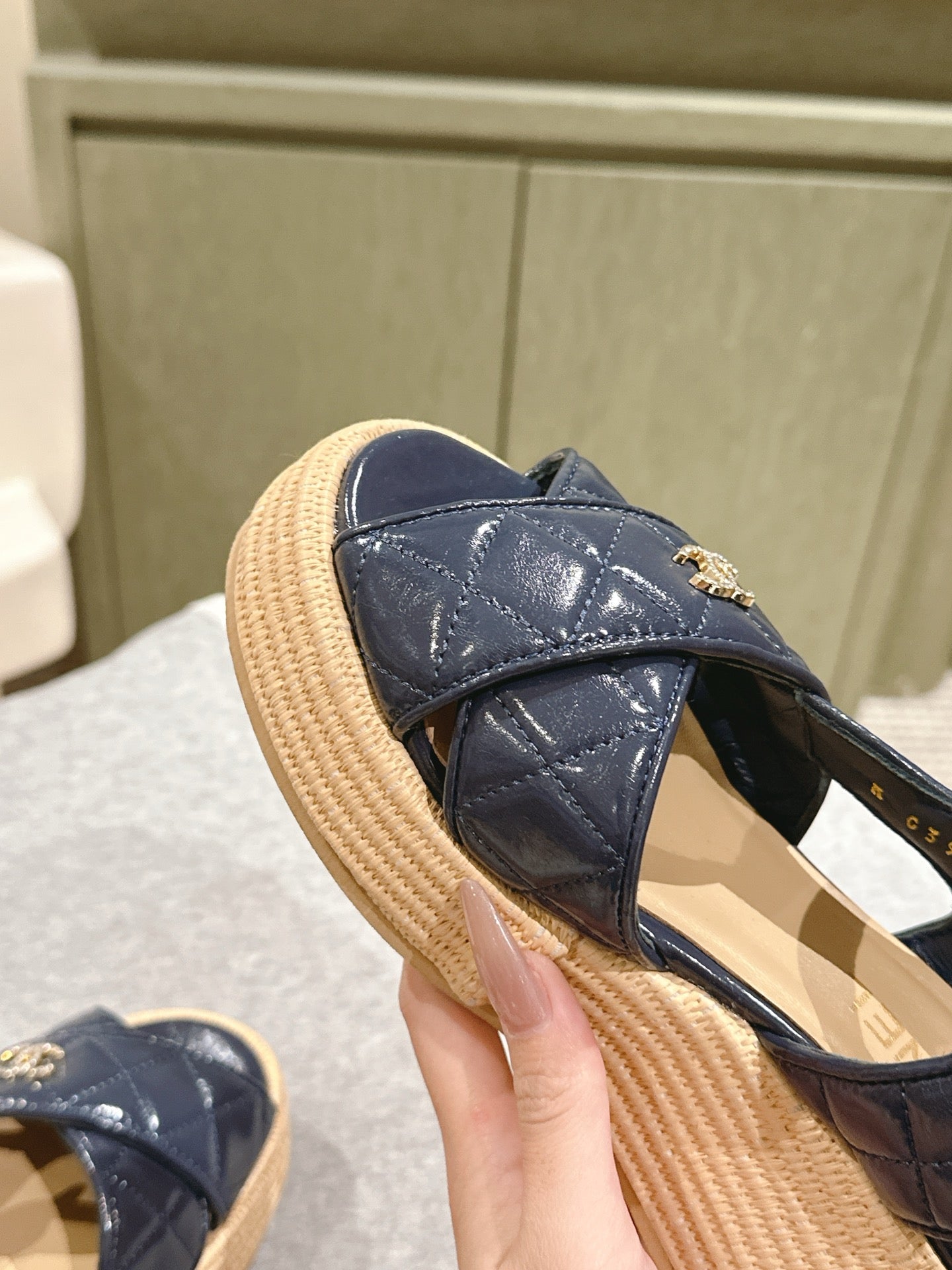 CC 25ss Espadrille Sandals 85mm Charcoal Gray Quited Sheepskin 462239