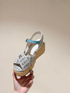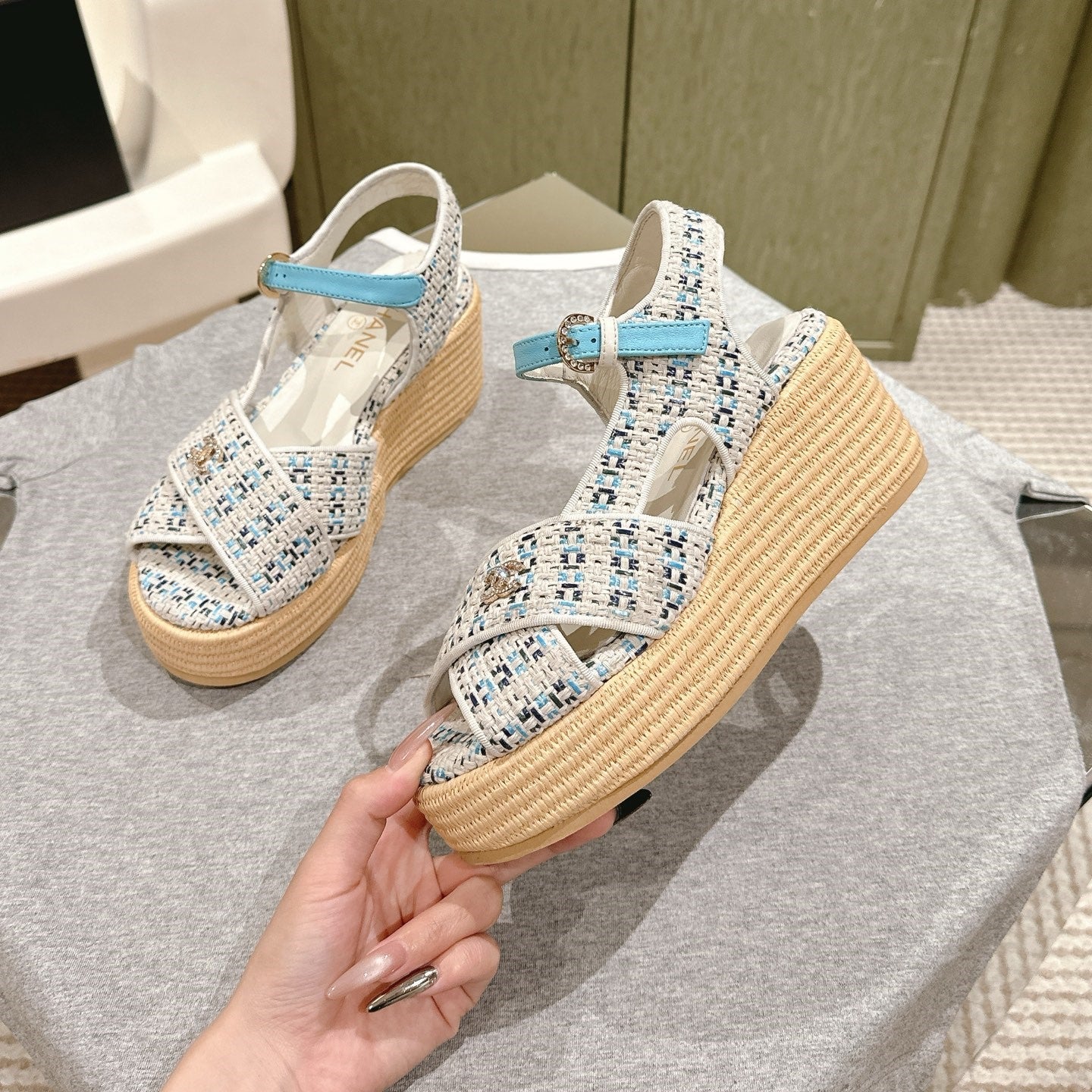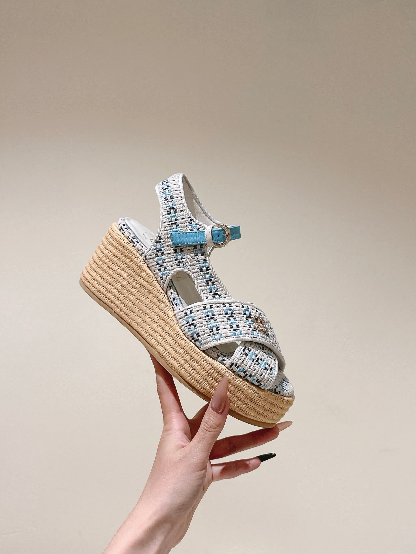 CC 25ss Espadrille Sandals 85mm Light Blue Colorful Tweed Cowhide 462244
