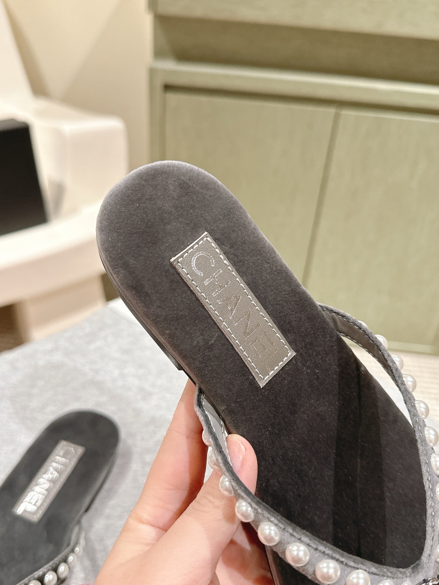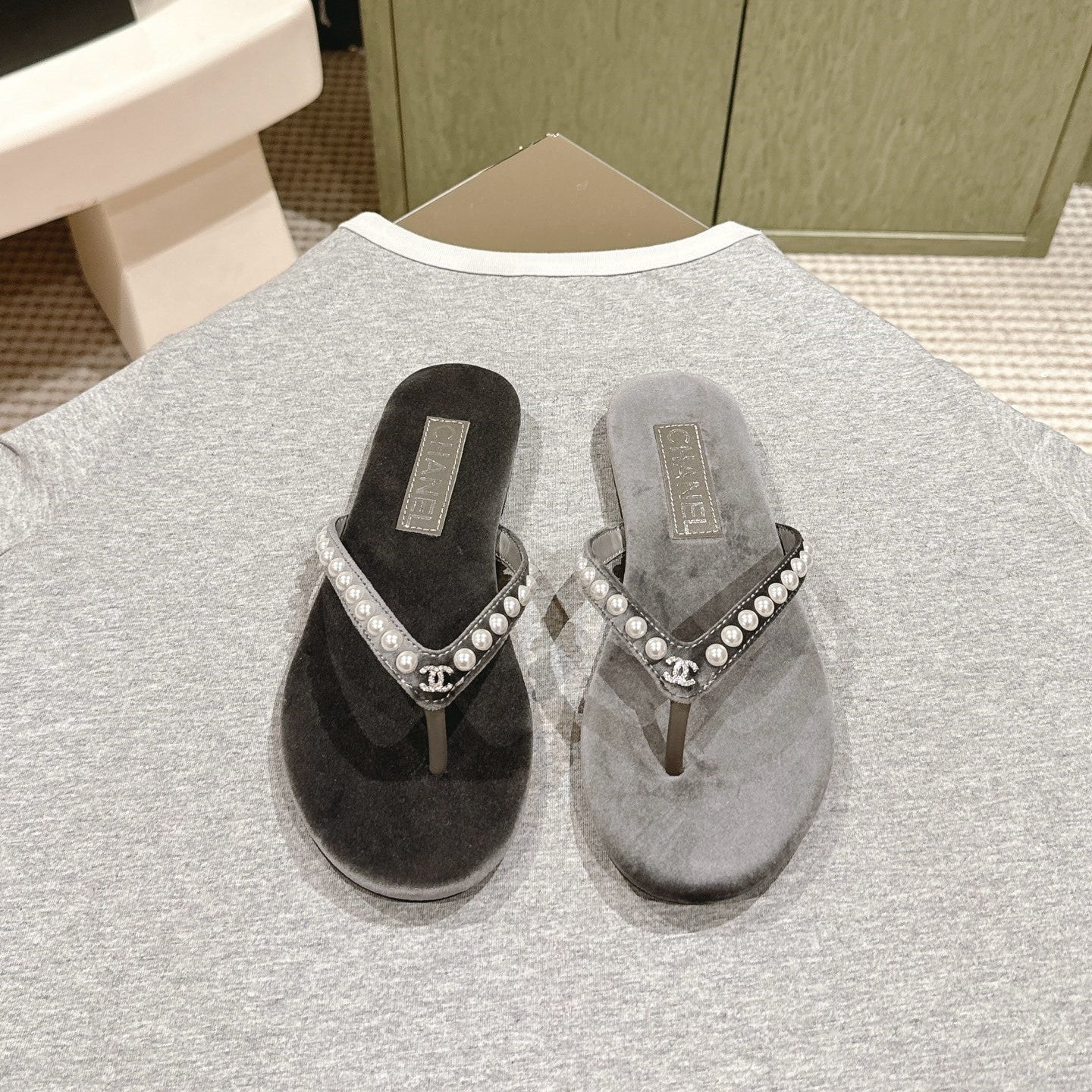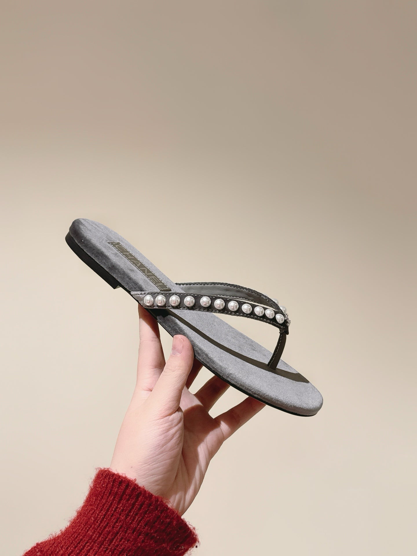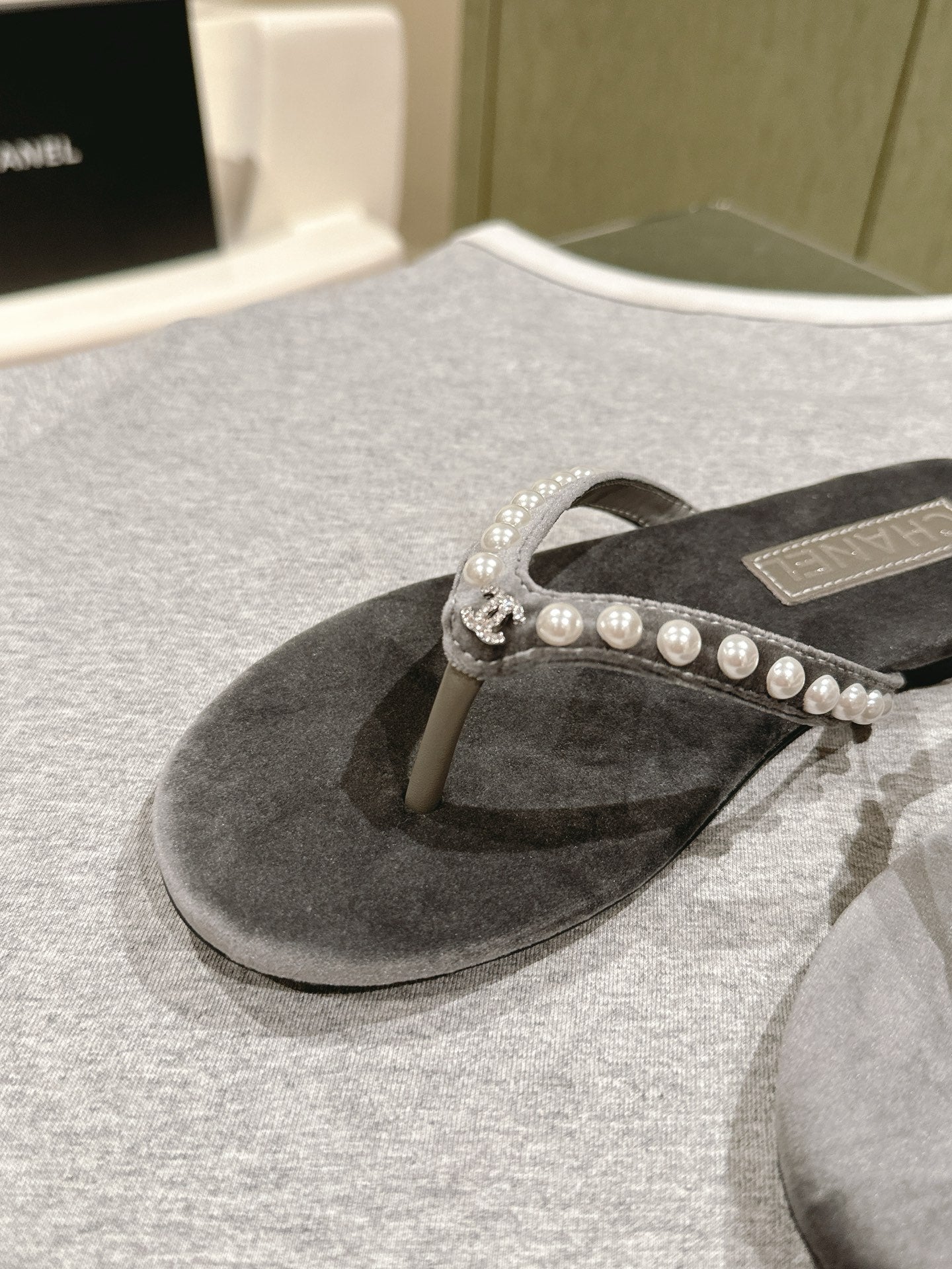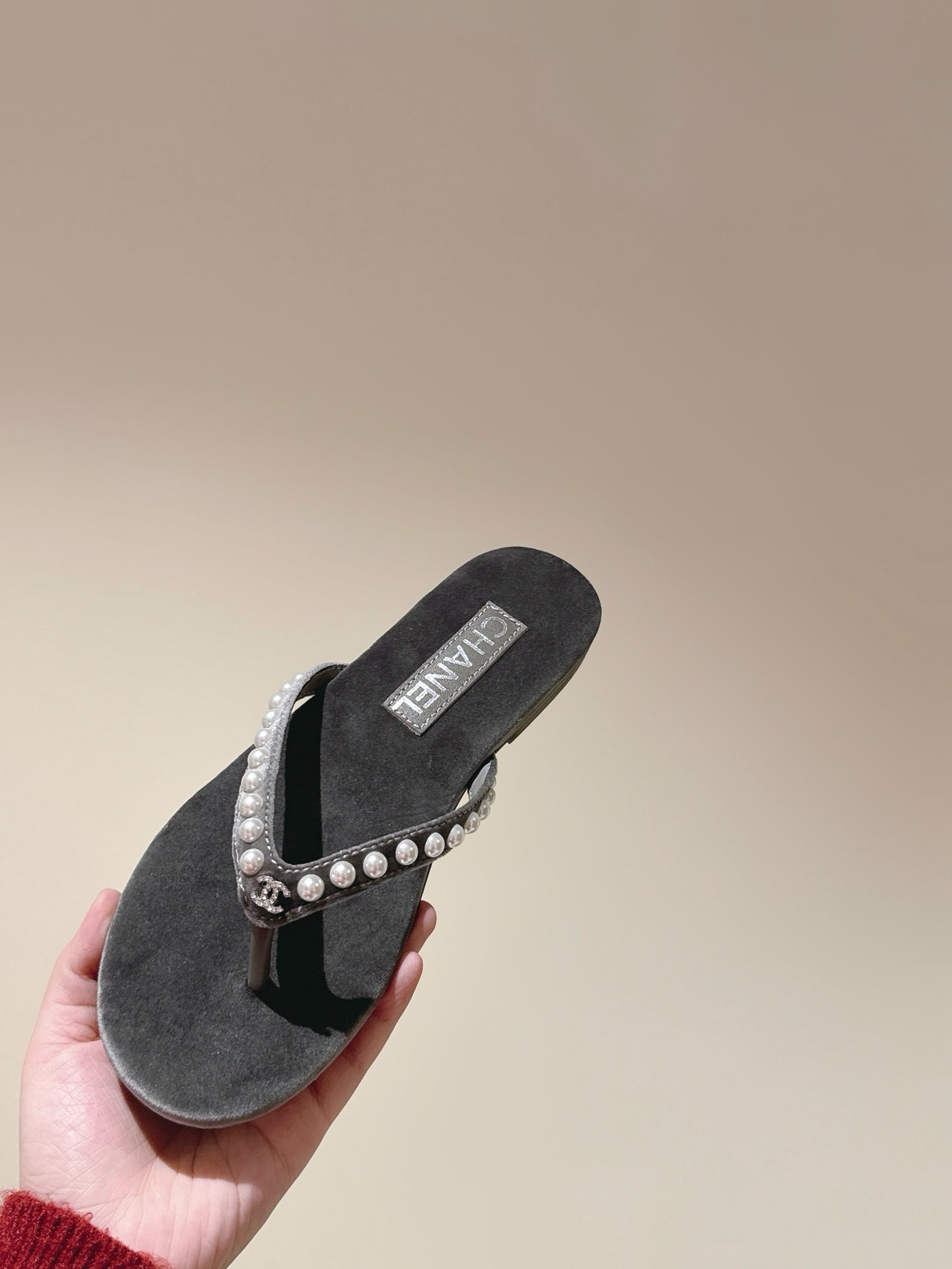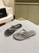CC 25ss Pearl Thong Sandal Black Mix Grey Velvet 461640