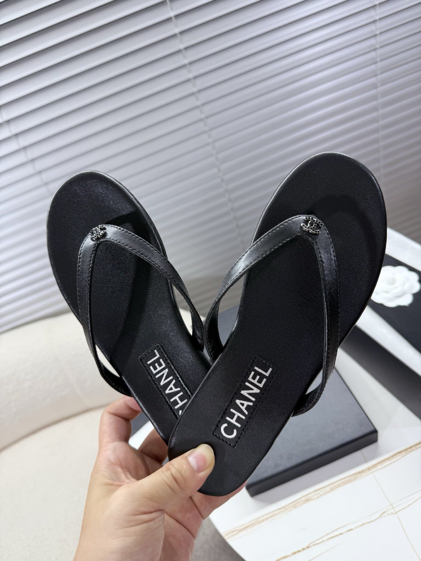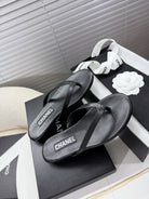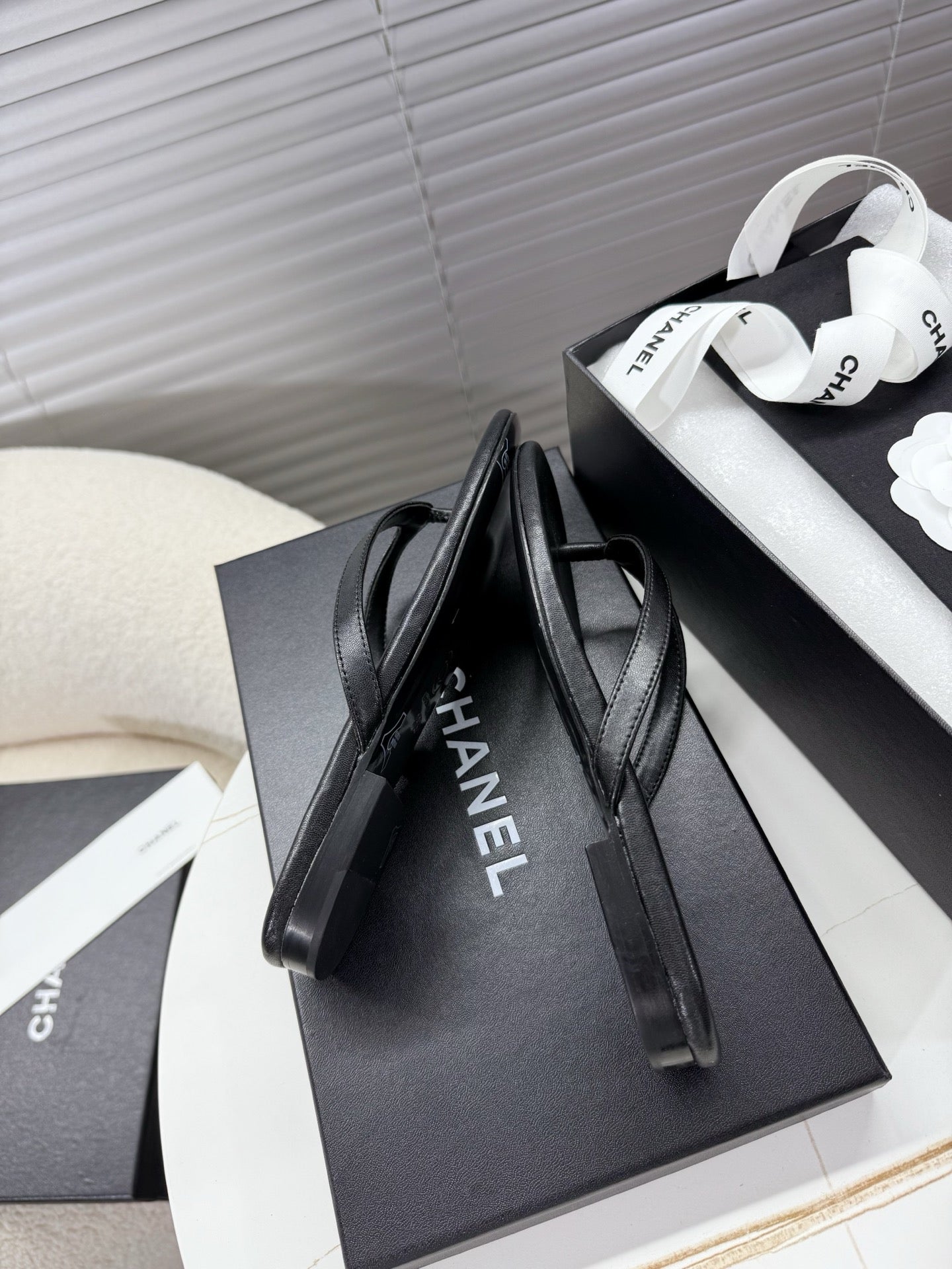 CC 25SS Thong Sandals Double C Rhinestone Black Sheepskin 352435