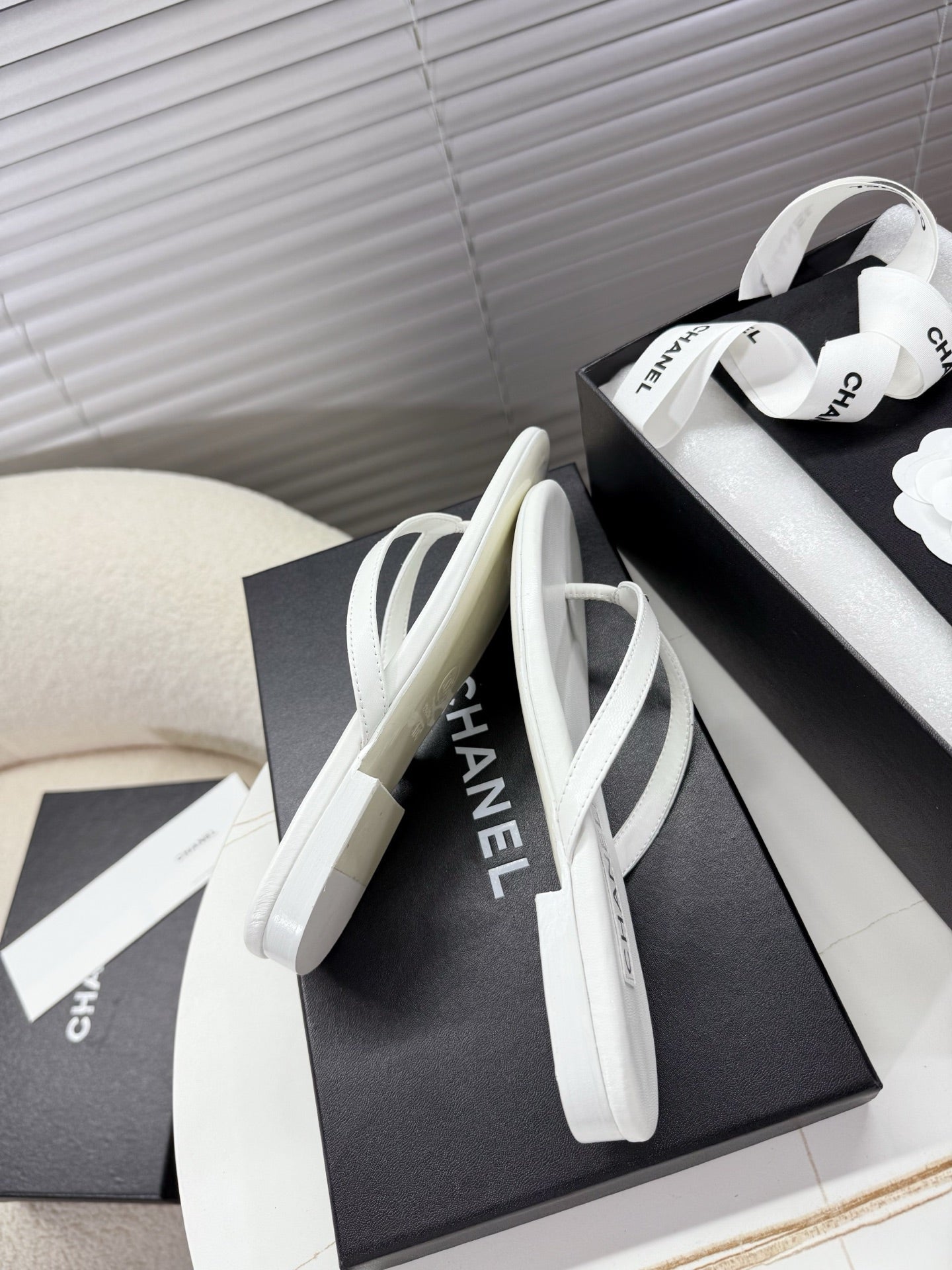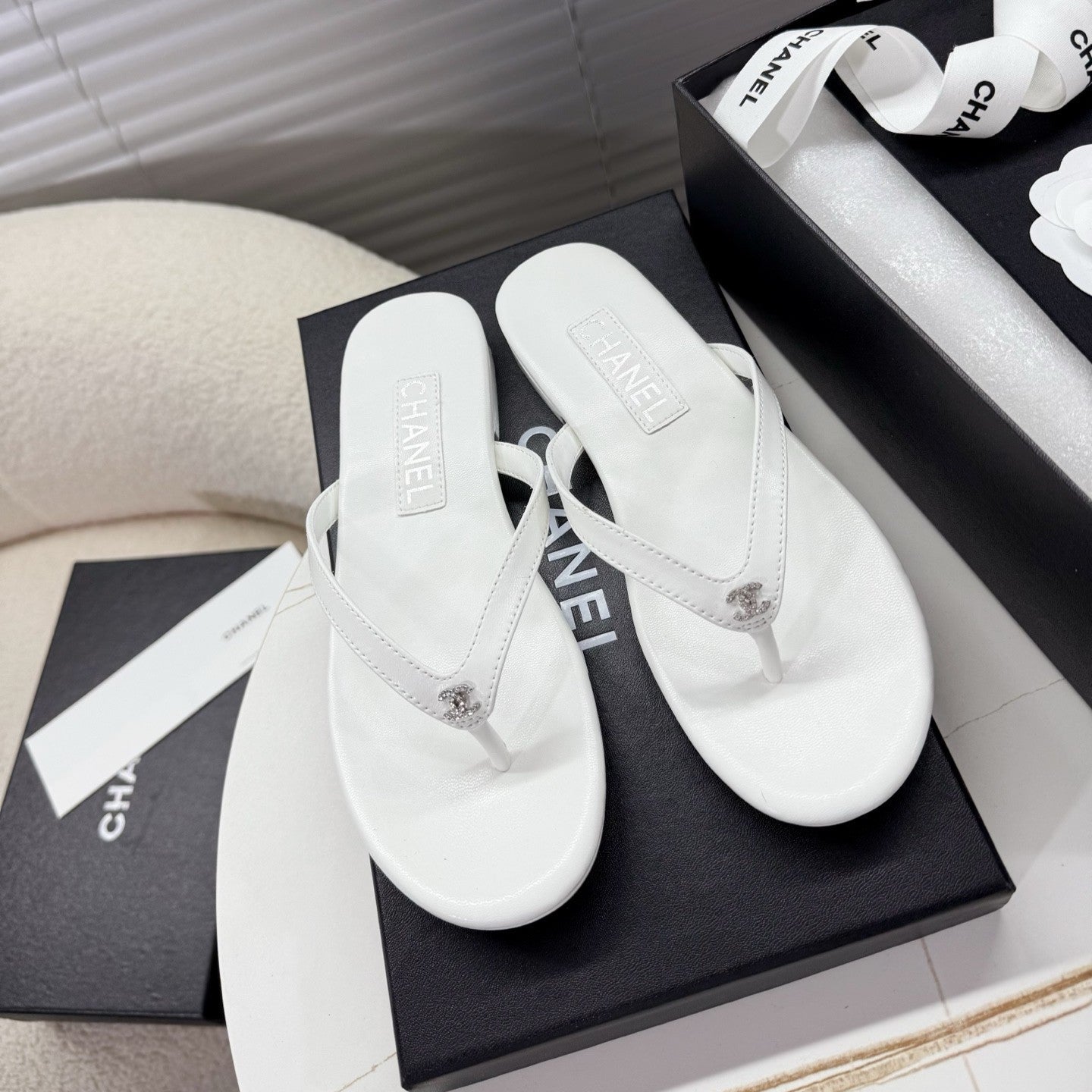 CC 25SS Thong Sandals Double C Rhinestone White Sheepskin 352434