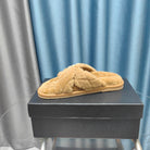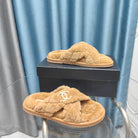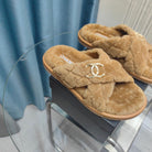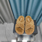 CC Crisscross Slippers Light Brown Pattern Fleece Wool