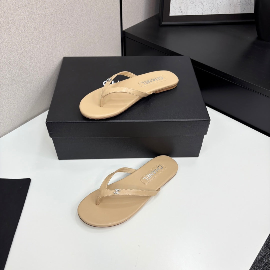 CC Crystal Logo Thong Sandal Beige Sheepskin 352476