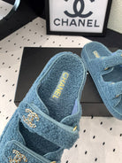 CC DAD SANDAL MULE IN AEGEAN BLUE LAMB FUR