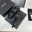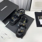 cc dad sandals black grained calfskin enamel logo