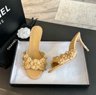 CC Little Camellia World Thin High Heels Tan Brown Lambskin