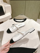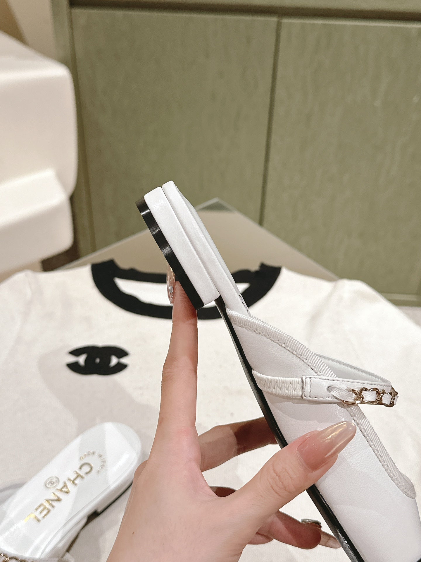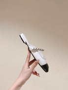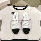 cc mule leather chain white calfskin black patent calfskin