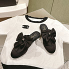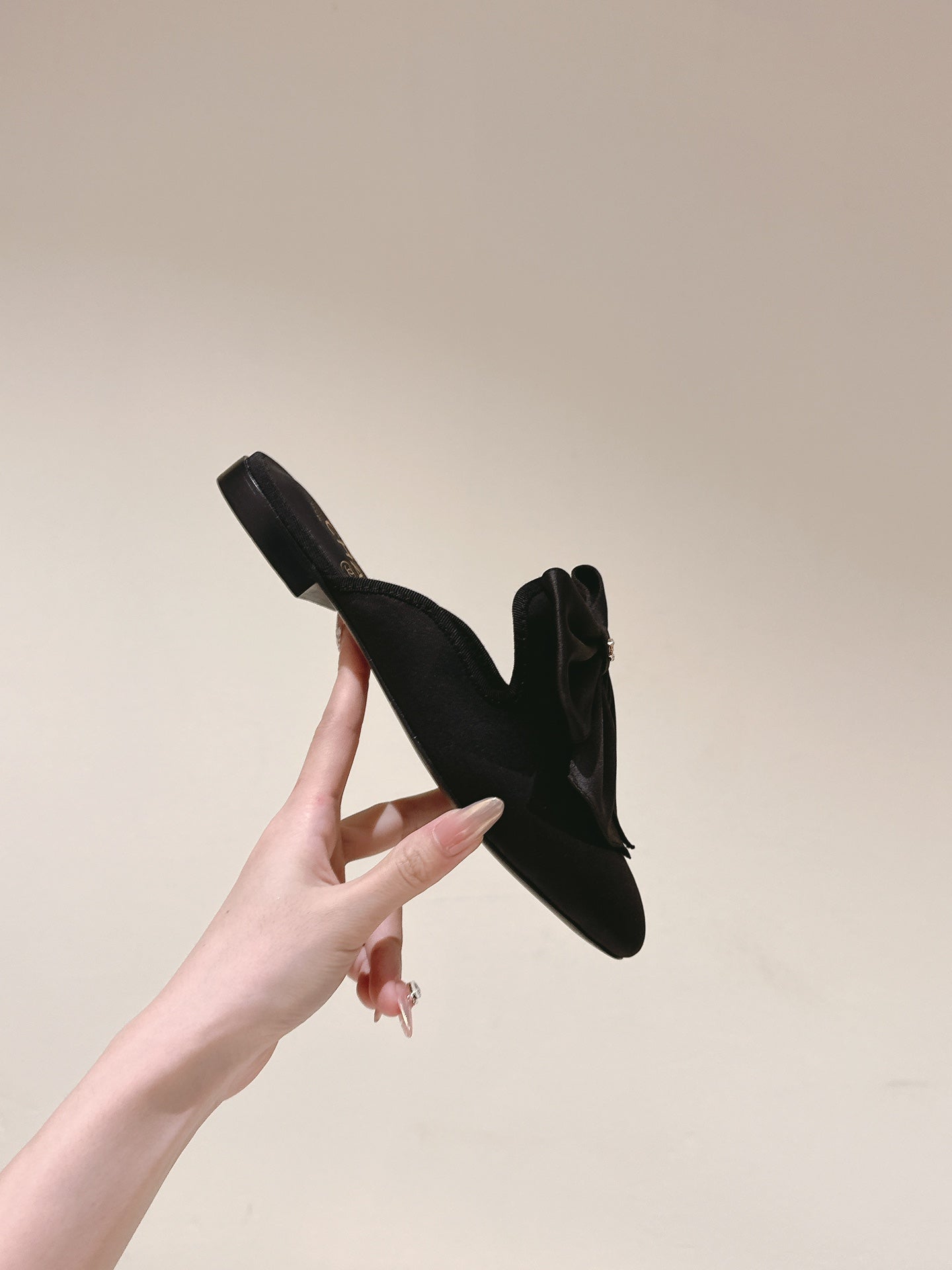 CC MULE WITH SILK BOW AND BLACK LAMBSKIN