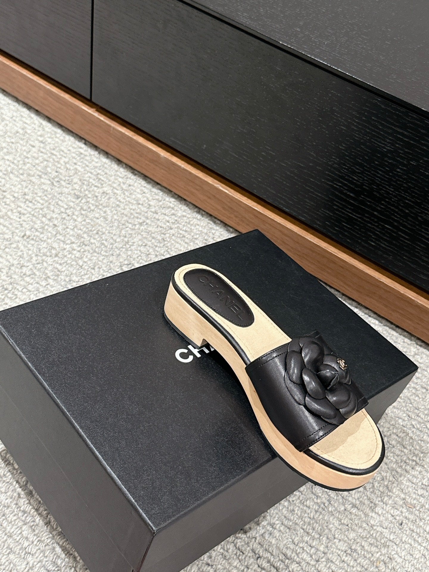 cc sandal flower black calfskin
