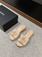 cc sandal flower white canvas beige calfskin