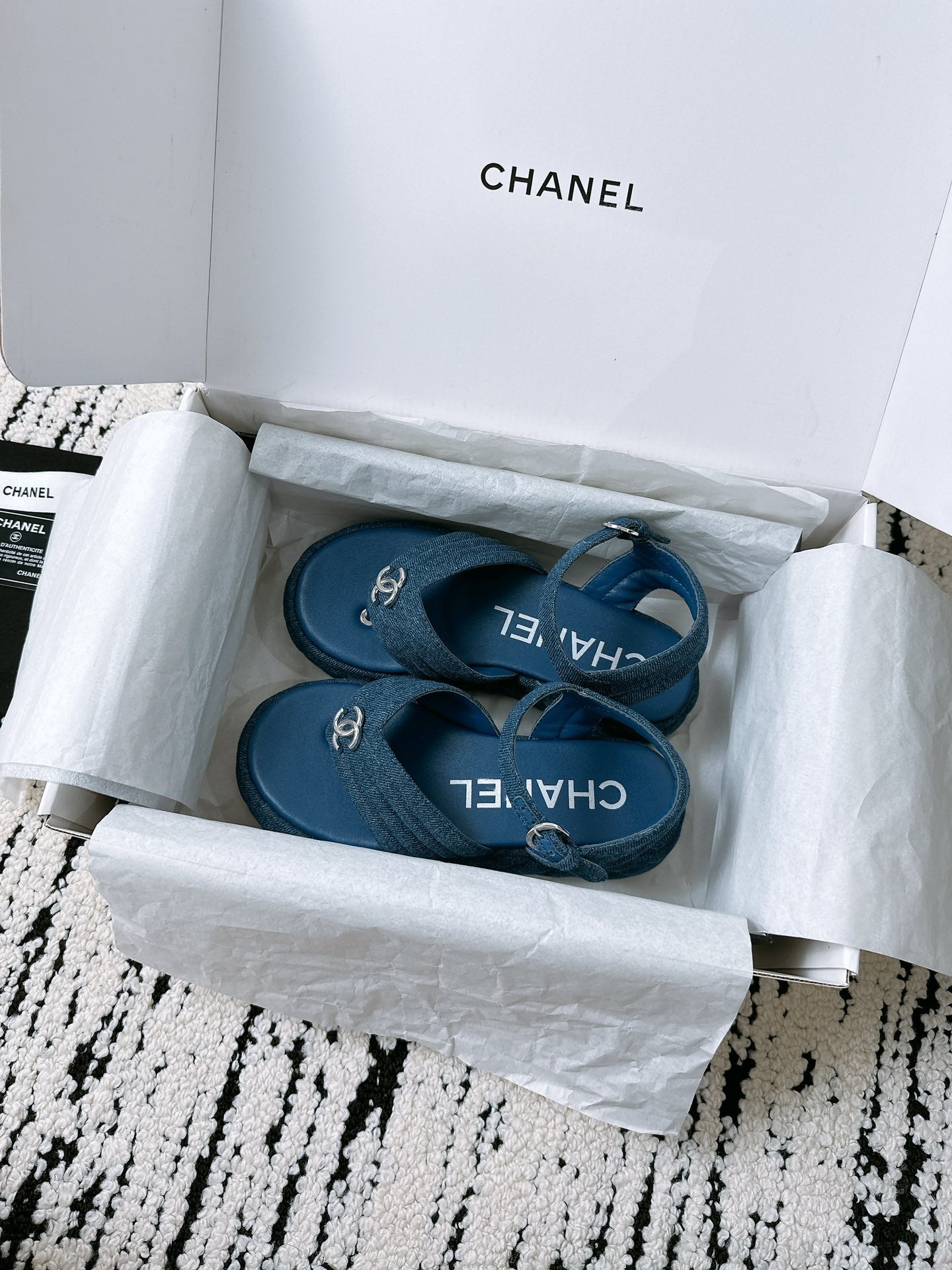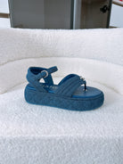 CC Sandals In Navy Blue Denim Fabric 144526