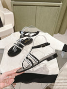 CC SANDALS PEARL ROMAN IN BLACK LAMBSKIN