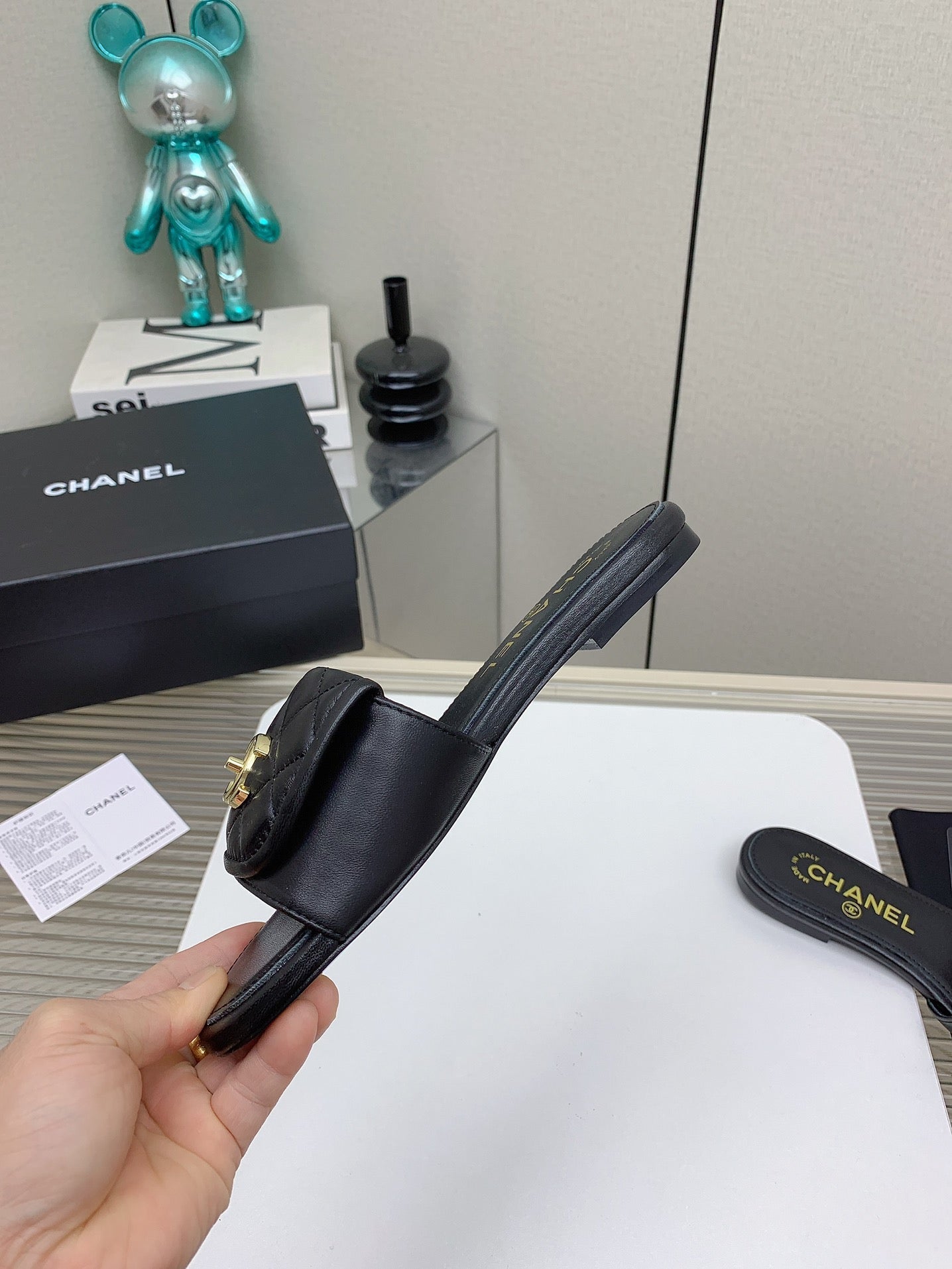 CC Slippers In Black Quilted Lambskin 148959