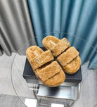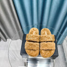 CC Slippers Light Brown Pattern Fleece Wool