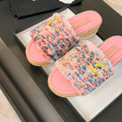 CC Slippers Pink Mix Blue Red Wool And Calfskin