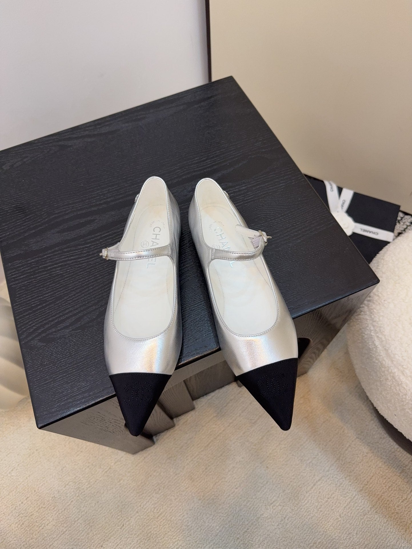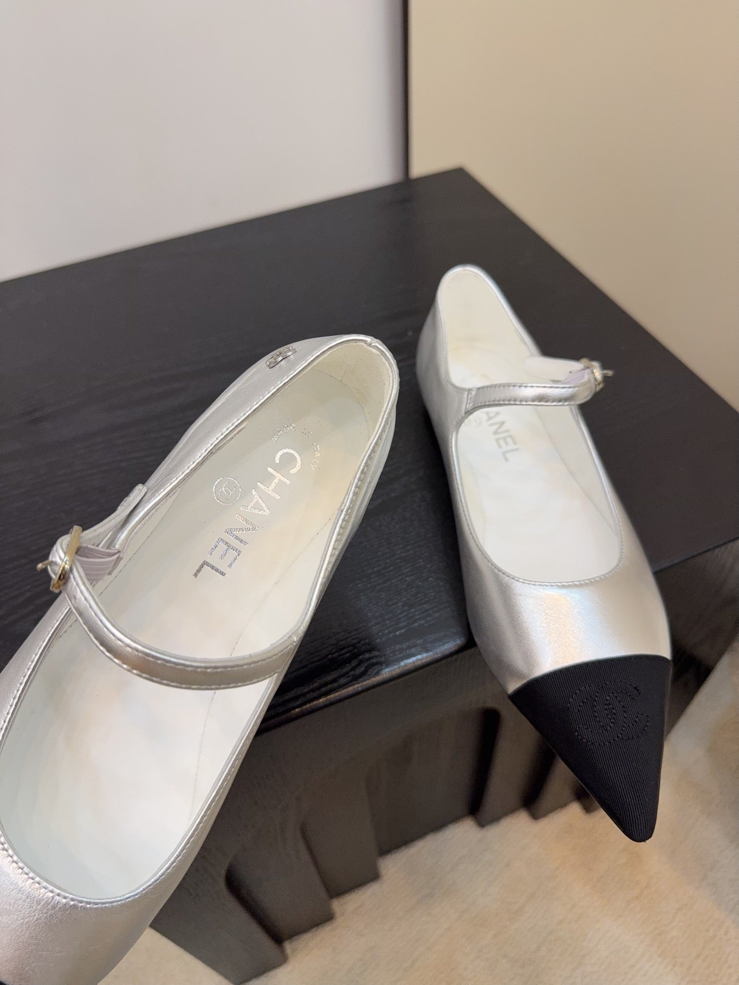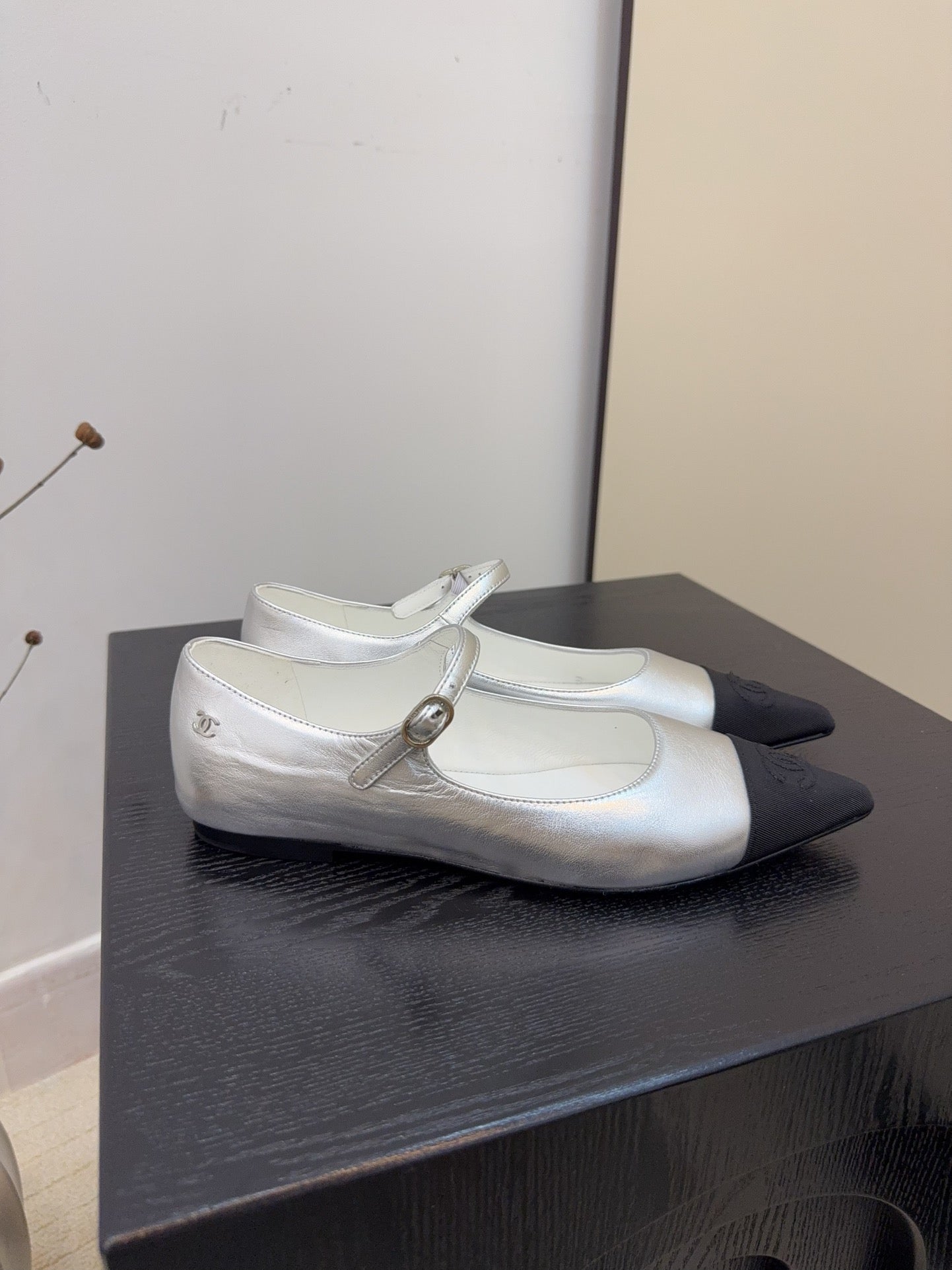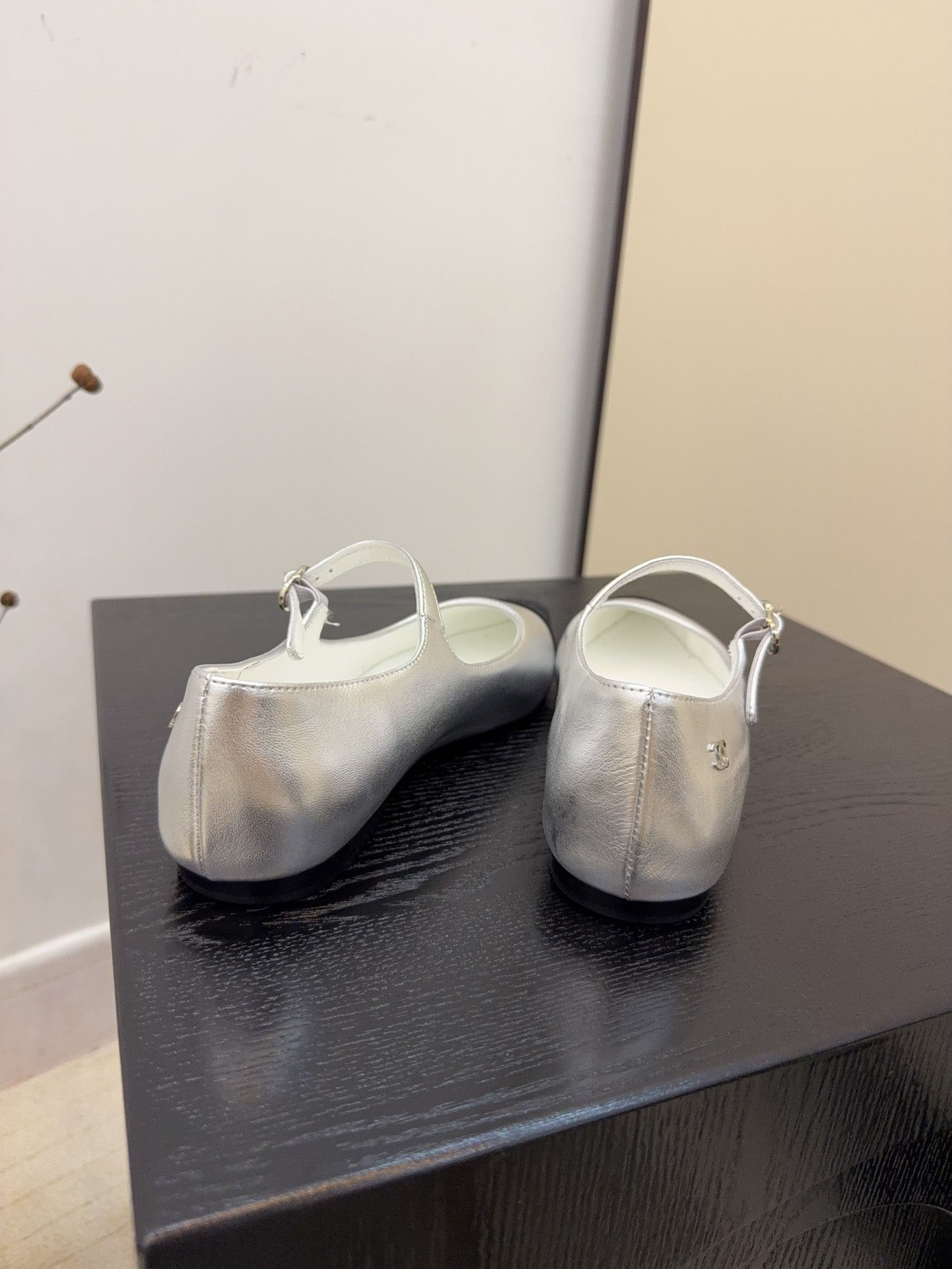 CD FW Mary Janes Sliver Metalic Lambskin & Grosgrain 505039