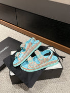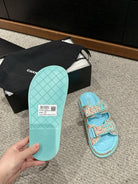 dad sandal mule cream raffia tiffany blue calfskin