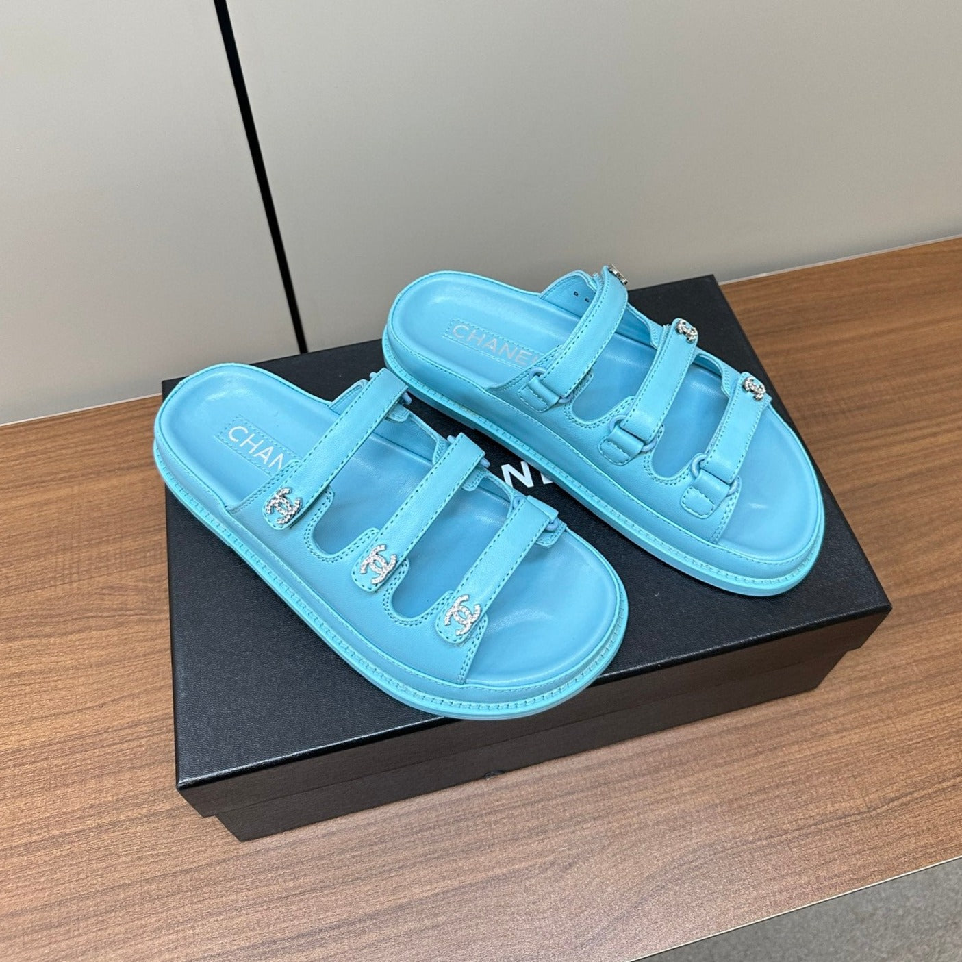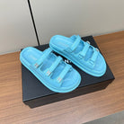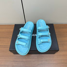 dad sandals cloud blue triple strap lambskin mules