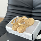 Double C Classic One-Strap Sandals Tan Brown Lambskin