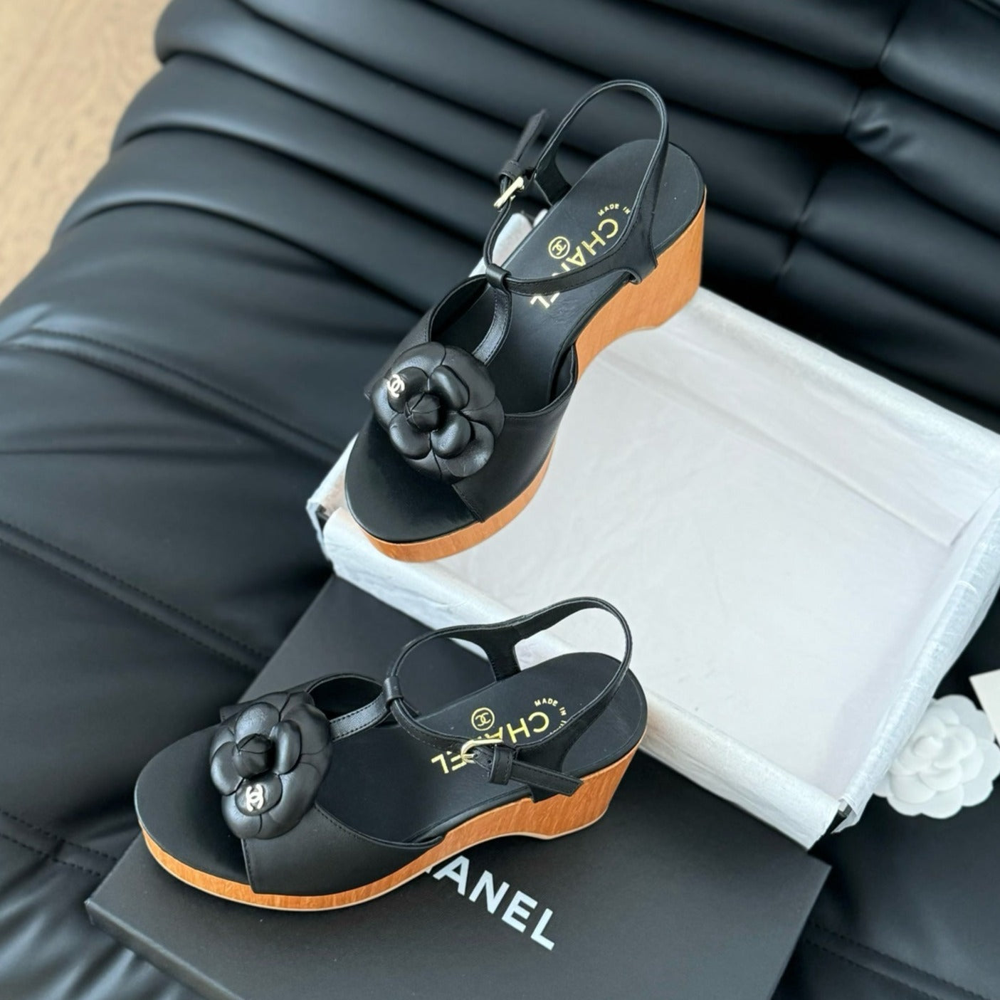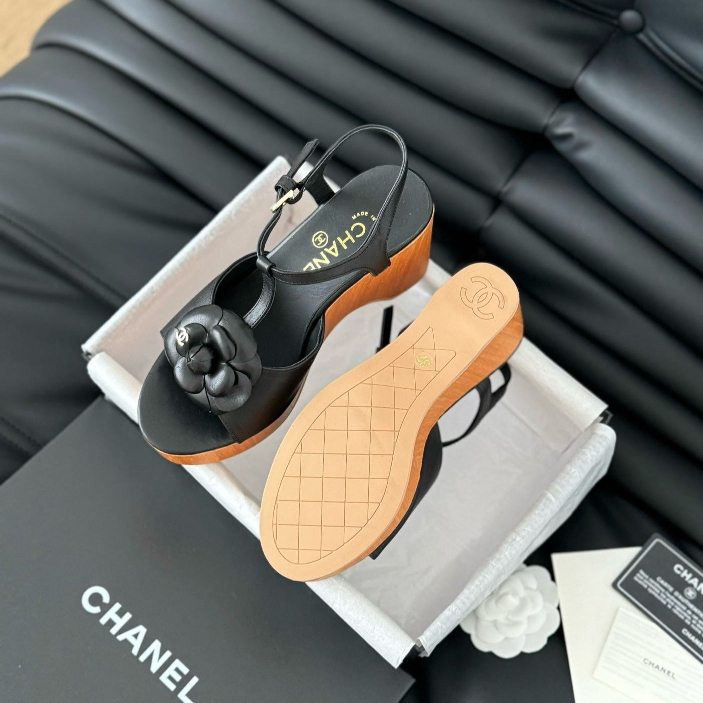 slingbacks sandal platform black flower calfskin
