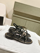 sandal leather strap black quilted calfskin